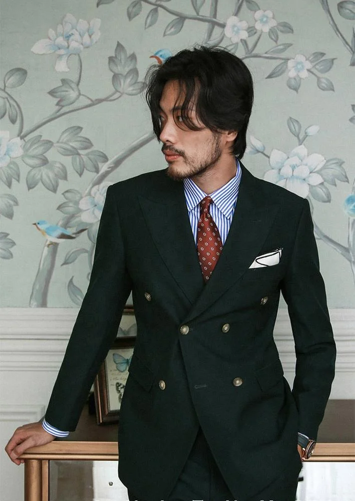 Men's Business Suit Double Breasted with Zipper Fly Fashion Design Plus Size Pants Breathable Coat for Turkey