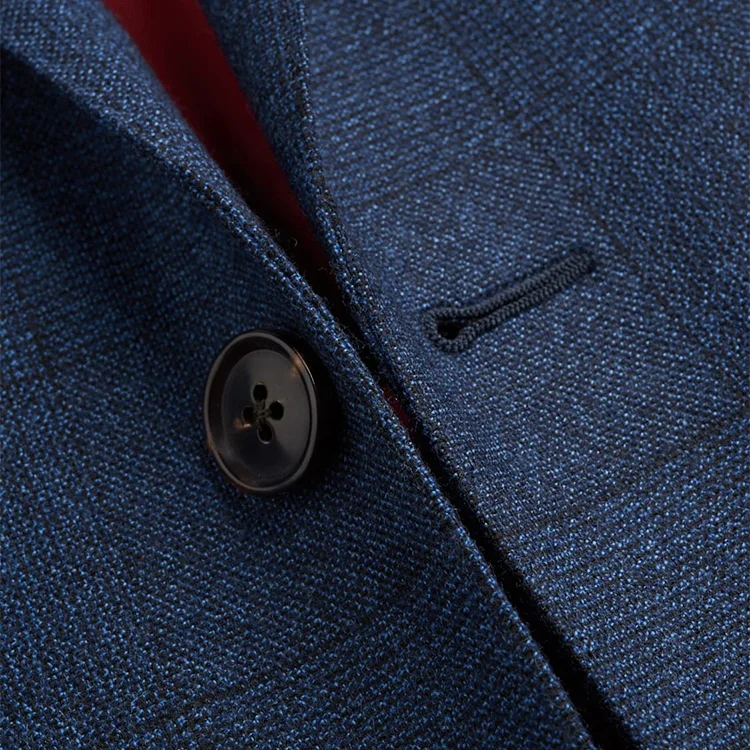 Men's Business Suit Slim Blue Woolen Plaid Pattern Double-Breasted Closure Button Decoration Plus Size 2-Piece Coat Pant for