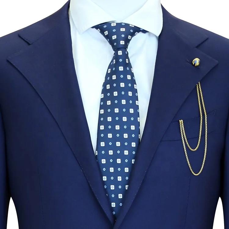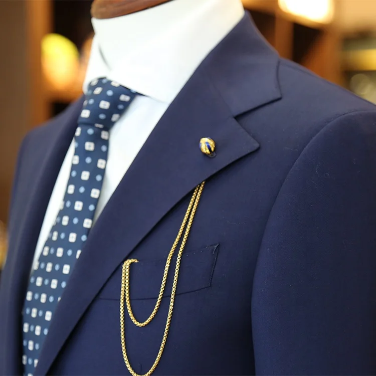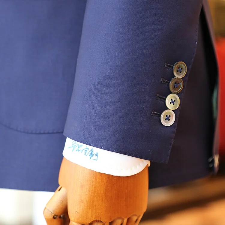 Datailor MTM Italy Style Men's Slim Blue Wool Fabric Yarn Dyed Suit Custom Made Special Lapel Blazer Single Breasted Two Button