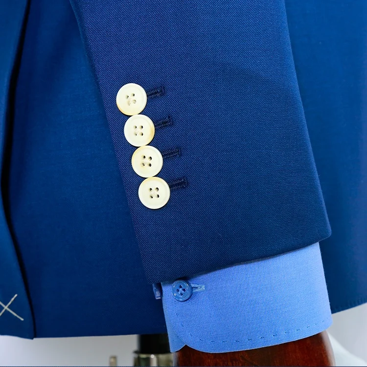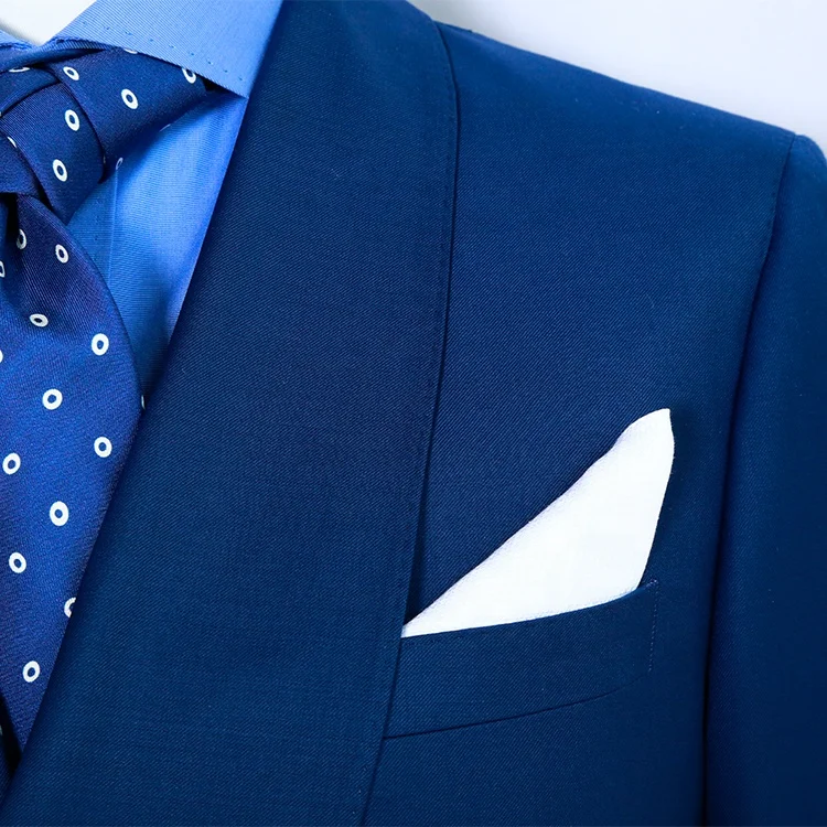 Custom Bespoke Men's Double Breasted Navy Wool Fabric Slim Suit Latest Design Business Suits with Plus Size Blazer and Pant