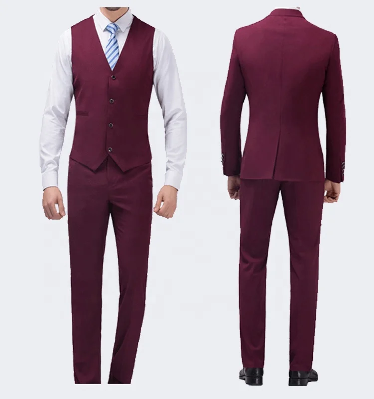 Wholesale Ready-Made Men's Waterproof Pants Suits 3-Piece Set Single Breasted Coat Zipper Fly Breathable Anti-Wrinkle Plus Size