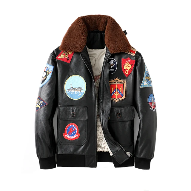 Wool Jacket Sheepskin Coat Leather Jacket Men's Fur Coat Badge A2 Bomber Jacket