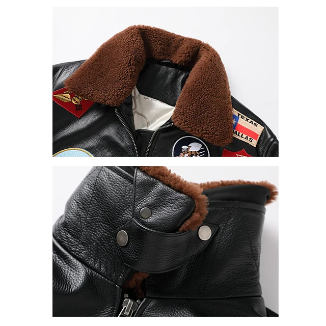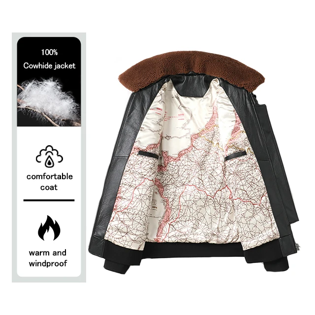 G1 Jacket Natural Fur Collar Cowhide Leather Jacket Men