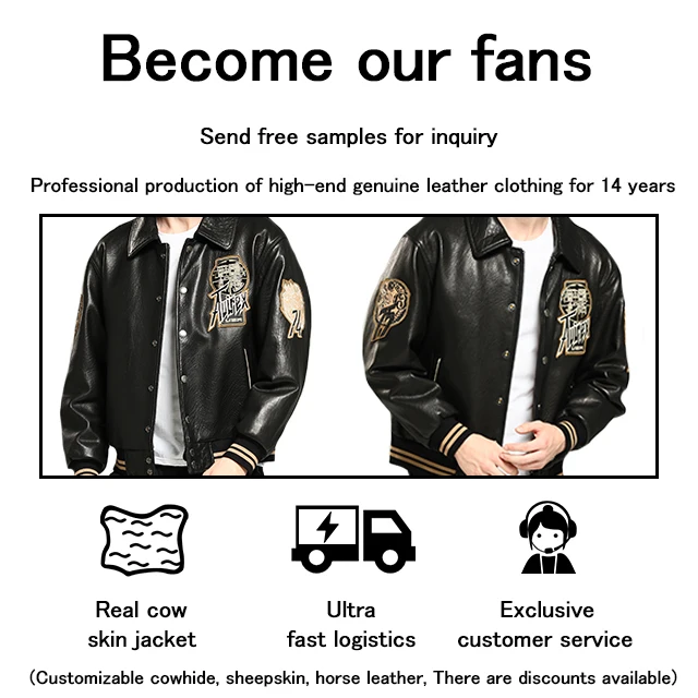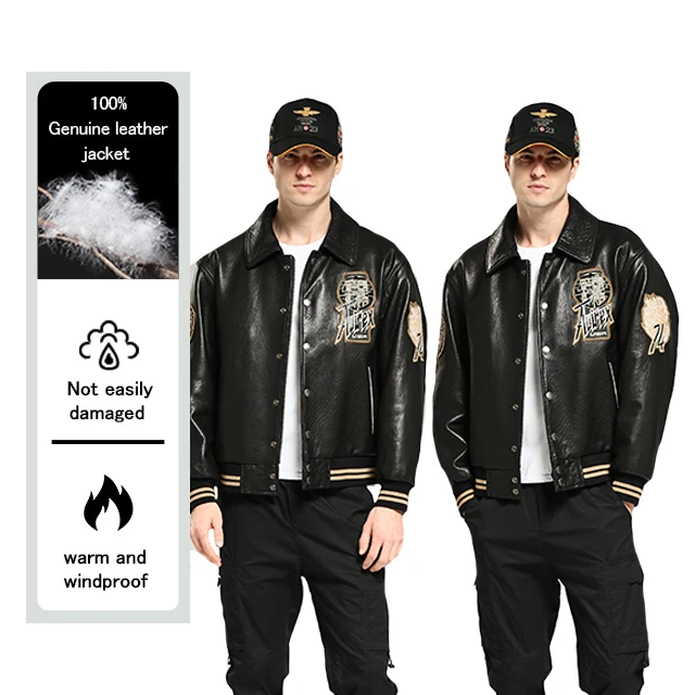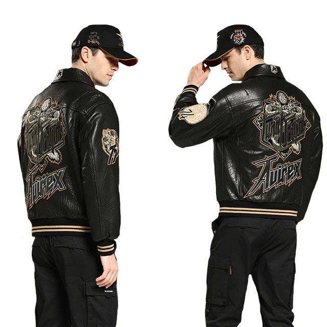 Customized Embroidered Cowhide Jacket for Men's Bomber Jacket