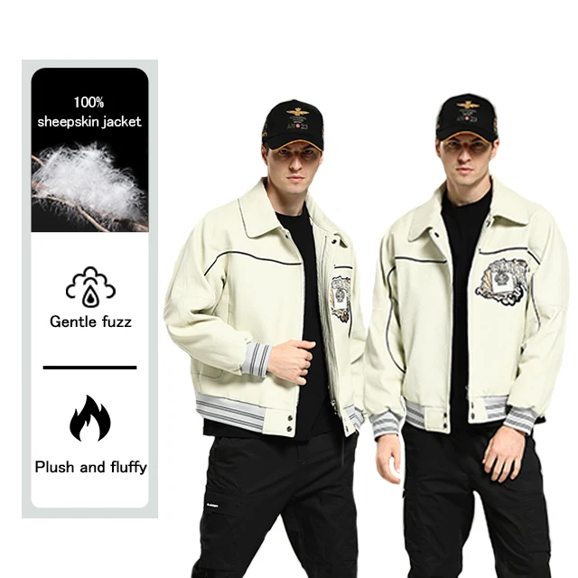 Wool Jacket Sheepskin Coat Leather Jacket Men's Fur Coat Badge A2 Bomber Jacket