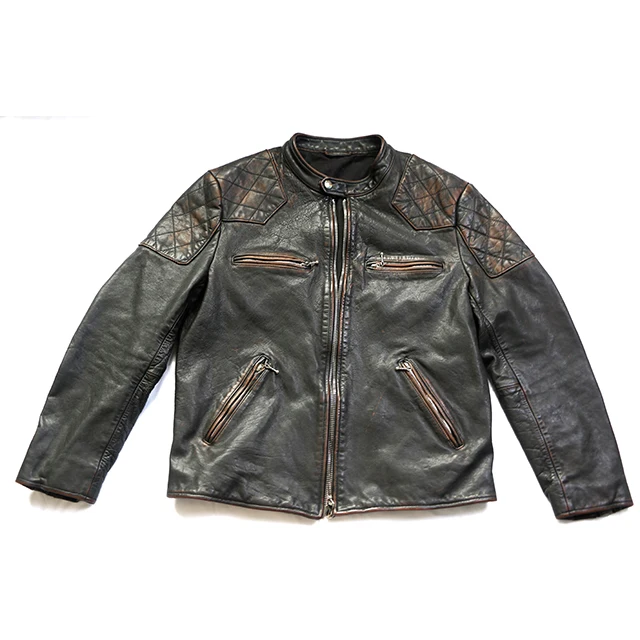 Vegetable Tanned Wash Black Custom Motorcycle Fashion Genuine Biker Leather Biker Jacket Made in China