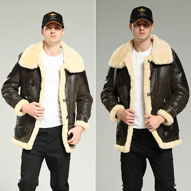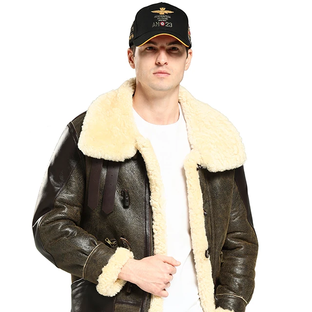 Wool Jacket Sheepskin Coat Leather Jacket Men's Fur Coat Badge A2 Bomber Jacket
