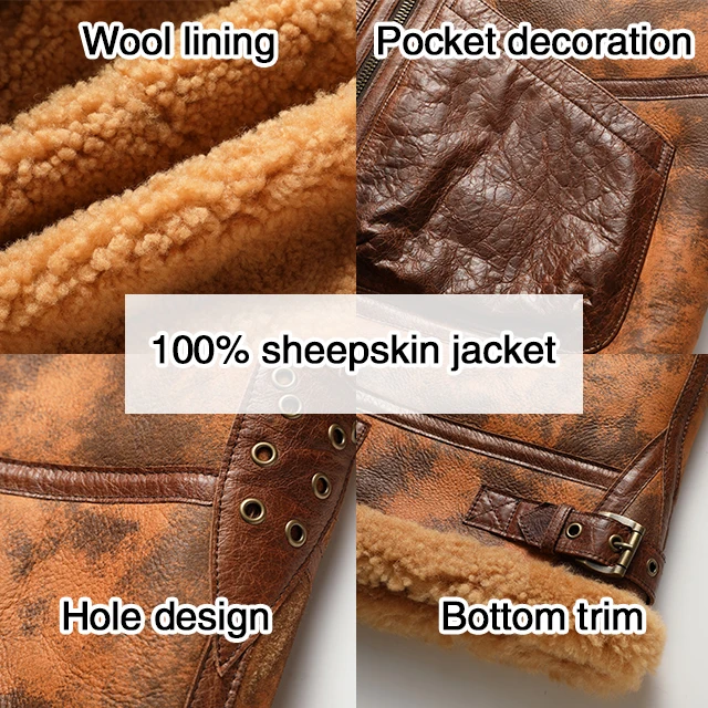 Wool Jacket Sheepskin Coat Leather Jacket Men's Fur Coat Badge A2 Bomber Jacket