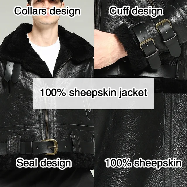 2023 Man Black aviator Lamb With Fur Sheepskin Bomber B-3 Leather Jacket