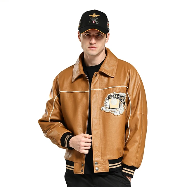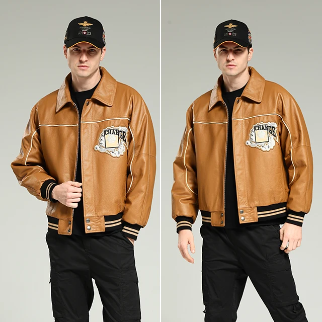 2023 Cow Hide Genuine Leather Jacket Bomber Jacket Men Leather aviator