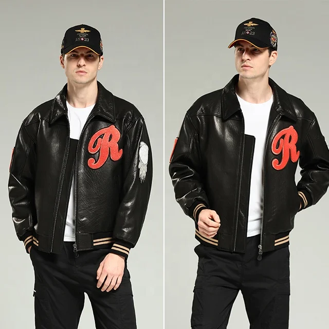 2023 Cow Hide Genuine Leather Jacket Bomber Jacket Men Leather aviator