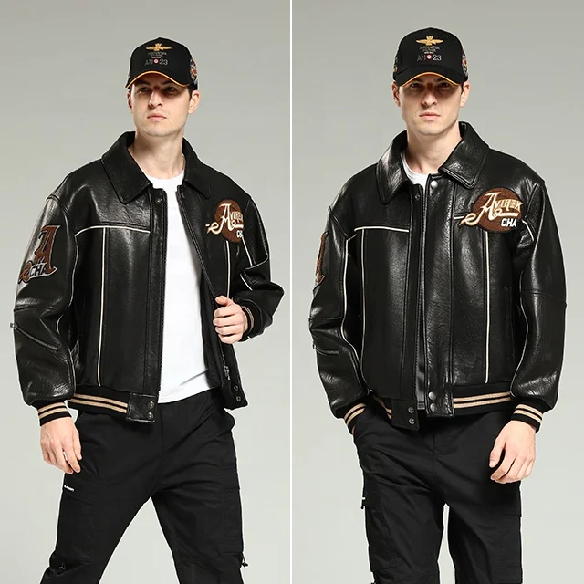2023 Cow Hide Genuine Leather Jacket Bomber Jacket Men Leather aviator