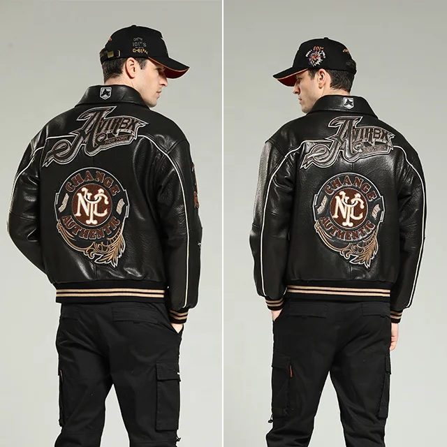 Wool Jacket Sheepskin Coat Leather Jacket Men's Fur Coat Badge A2 Bomber Jacket