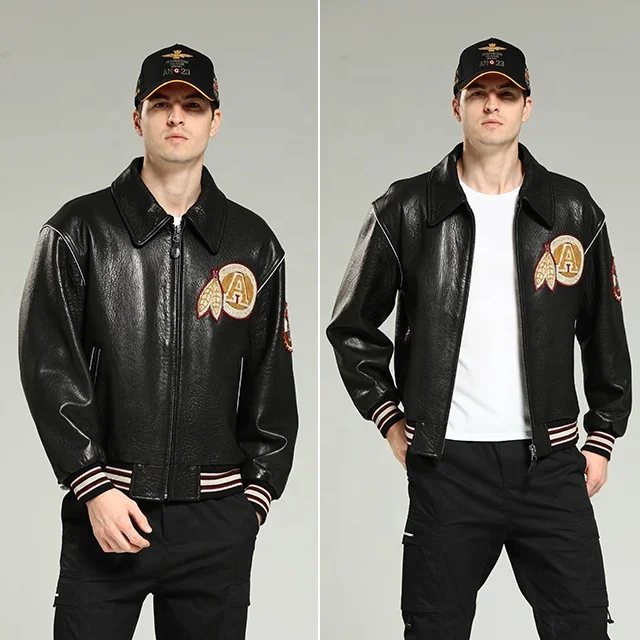 2023 Cow Hide Genuine Leather Jacket Bomber Jacket Men Leather aviator