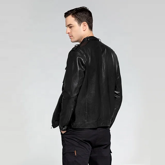 Vegetable Tanned Wash Black Custom Motorcycle Fashion Genuine Biker Leather Biker Jacket Made in China
