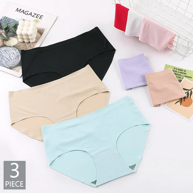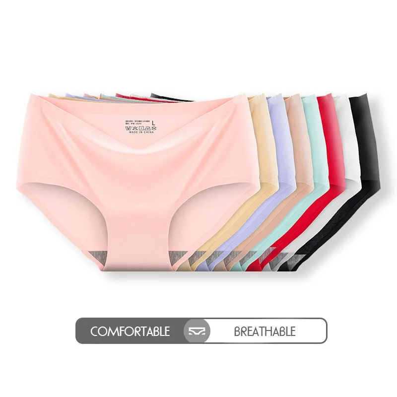 Women's Seamless Panties Female Lingerie Sexy Underwear Mid Waist Briefs Comfort Panty Plus Size Underpants