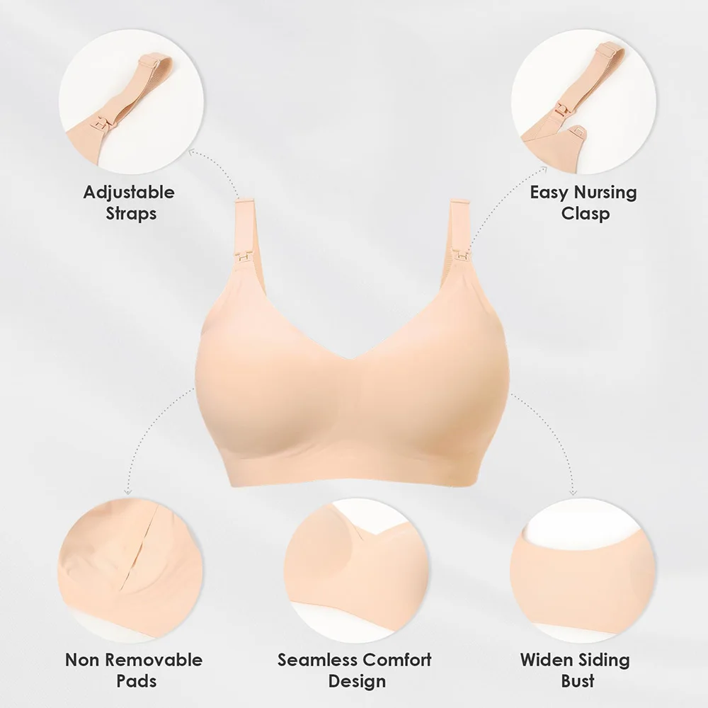 Customized Ladies Maternity Nursing Bras Breastfeeding Wirefree Full Coverage Supportive Push up Seamless Padded Bra