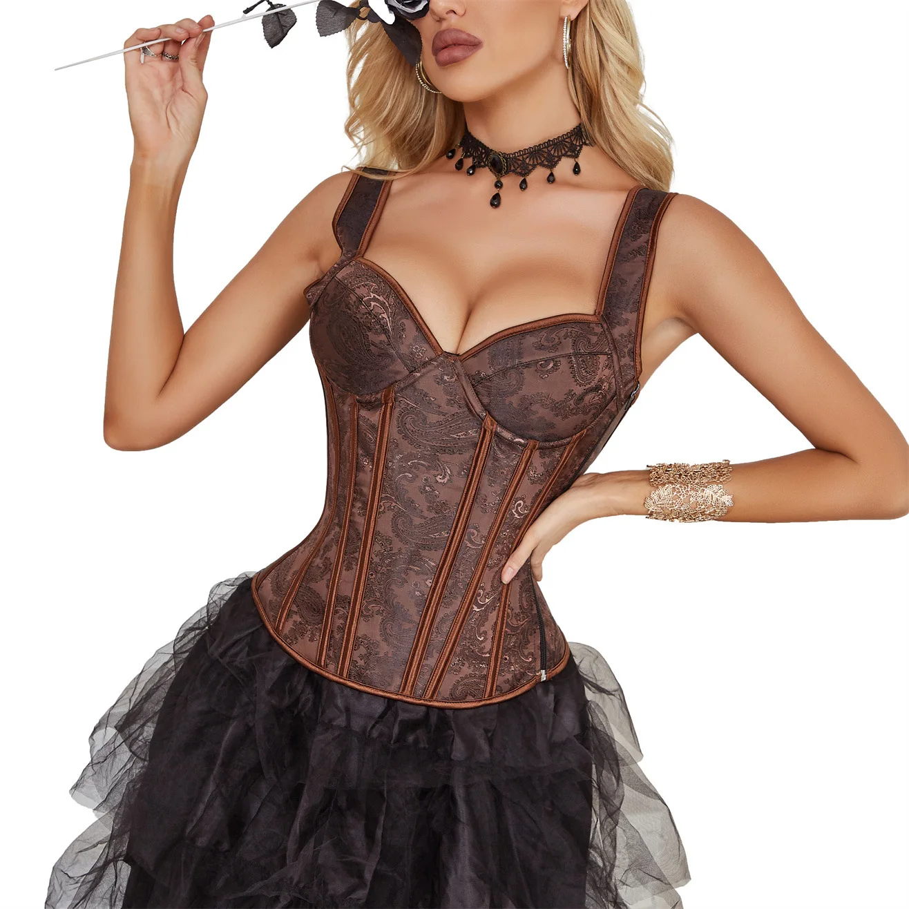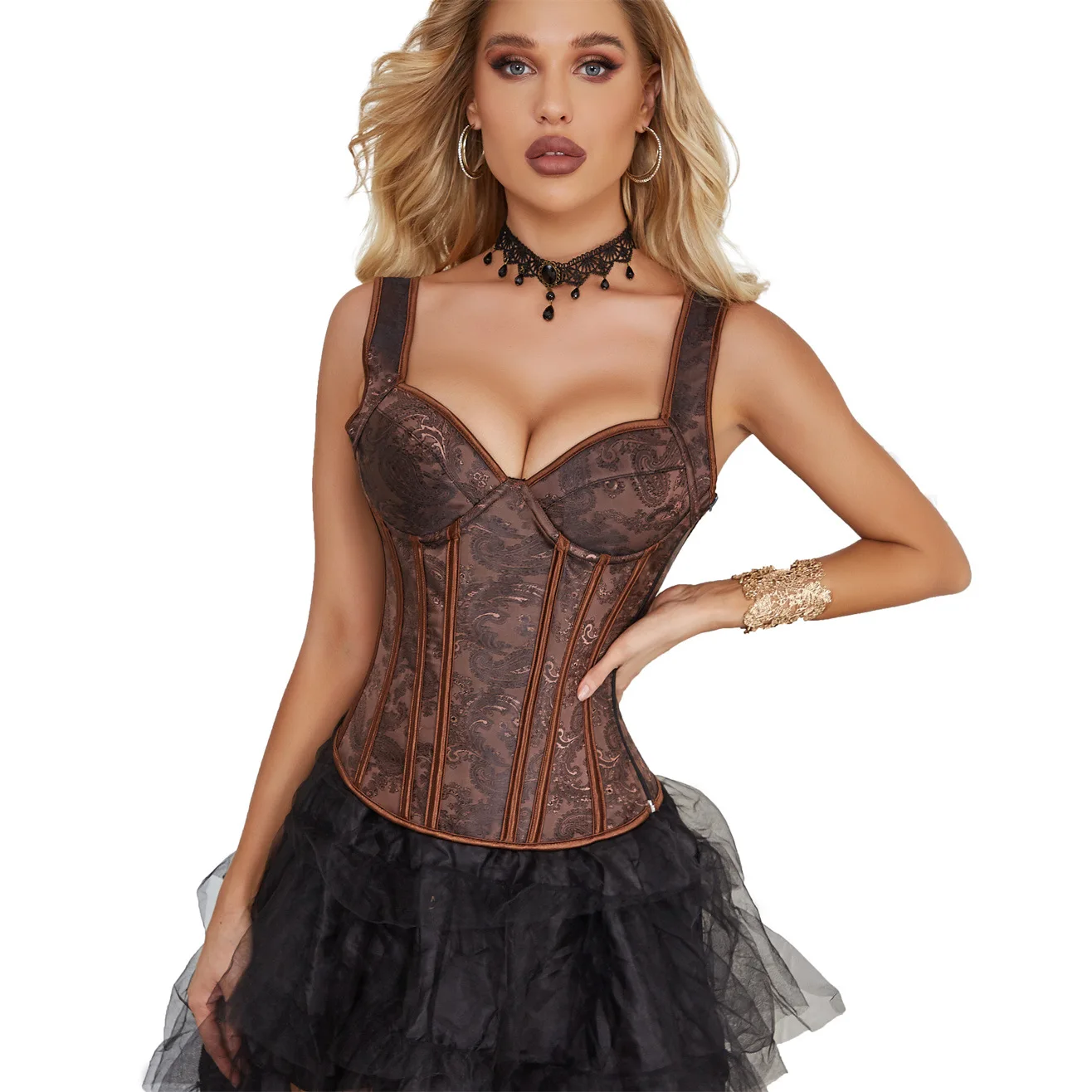 Vintage Waist Corset with Lace Decoration Top Tight Body Underwear Abdominal Strap and Shoulder Chest Bracket Retro Style