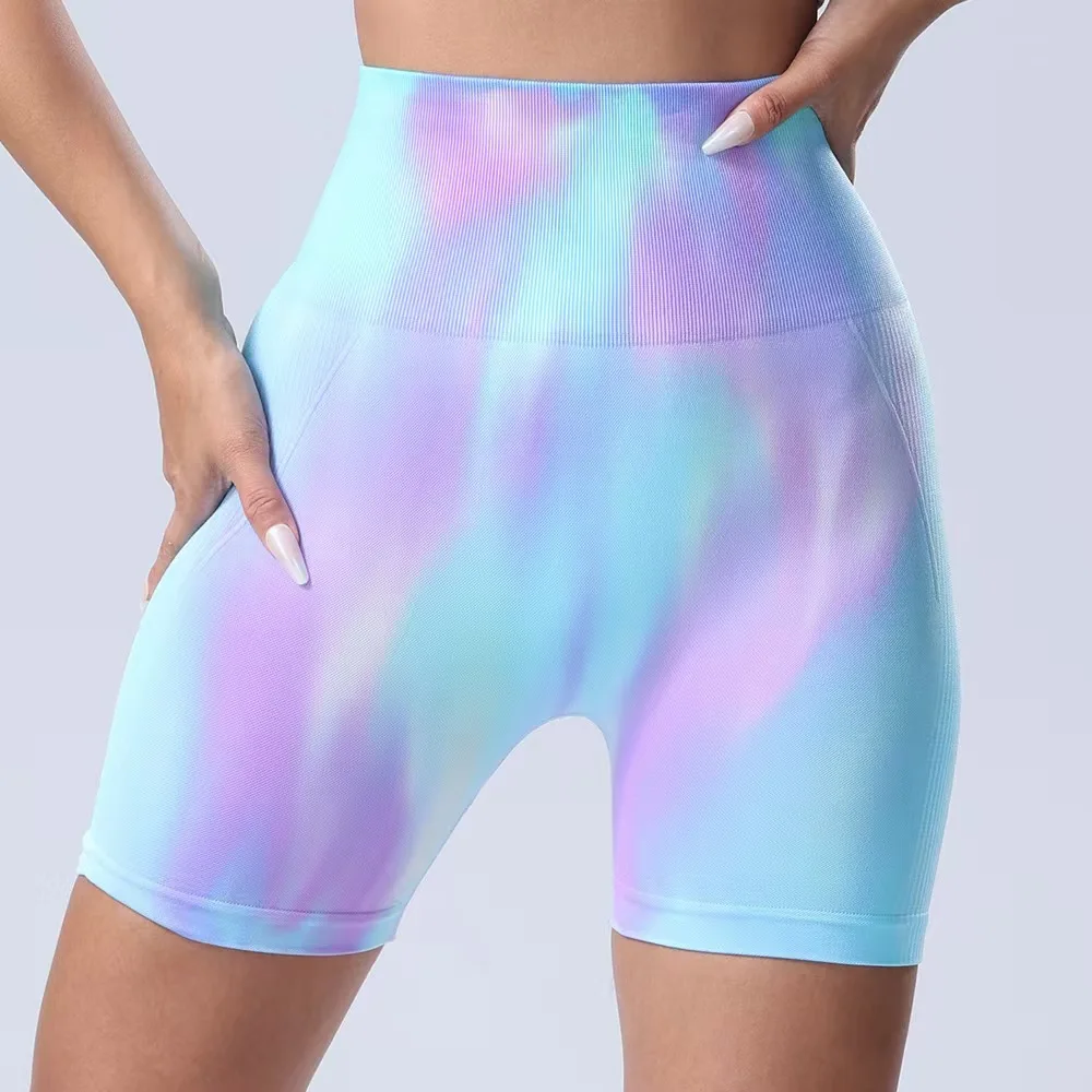 OEM New Color Women's Yoga Pants Seamless Sports Shorts High Elastic Hip Fashion Tie-dyed Shorts.