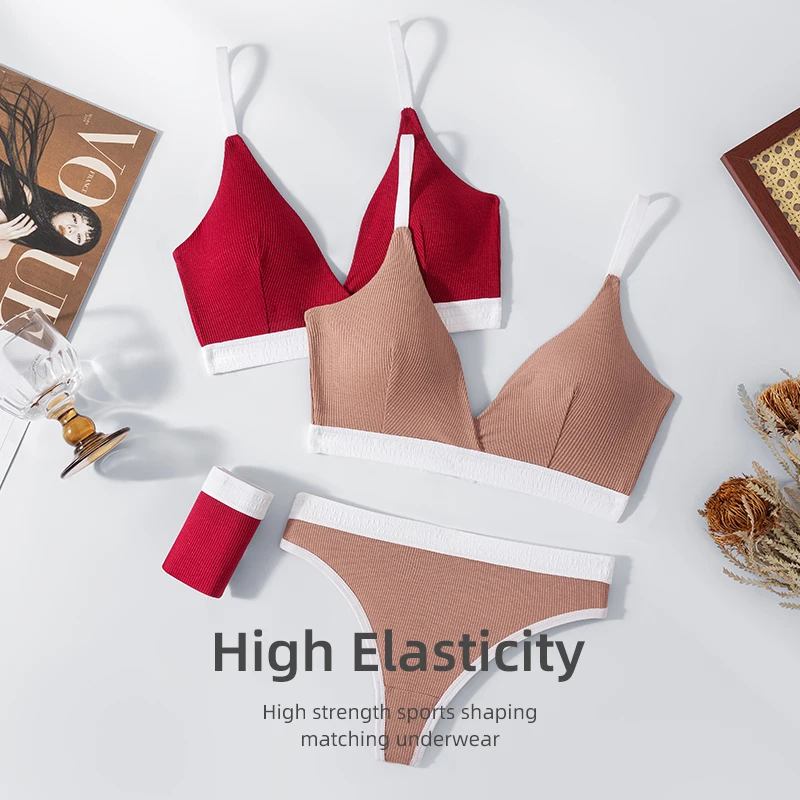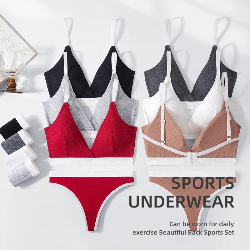 Factory direct women's bra set thong breasted underwear hollowed out to beautify the back breathable and comfortable underwear.