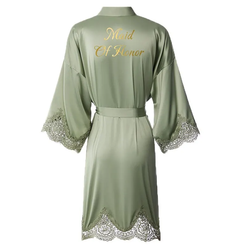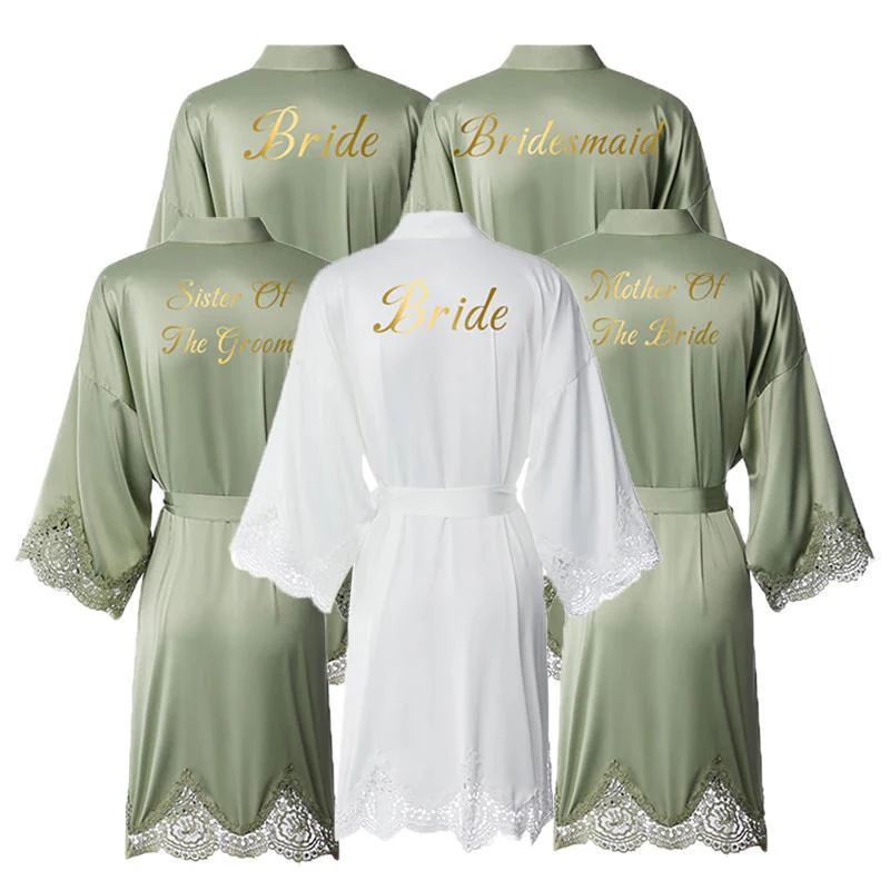 Wedding Robes for Bride Bridesmaids Women High Quality With Lace Trim Silk Satin Robe Morning Gowns