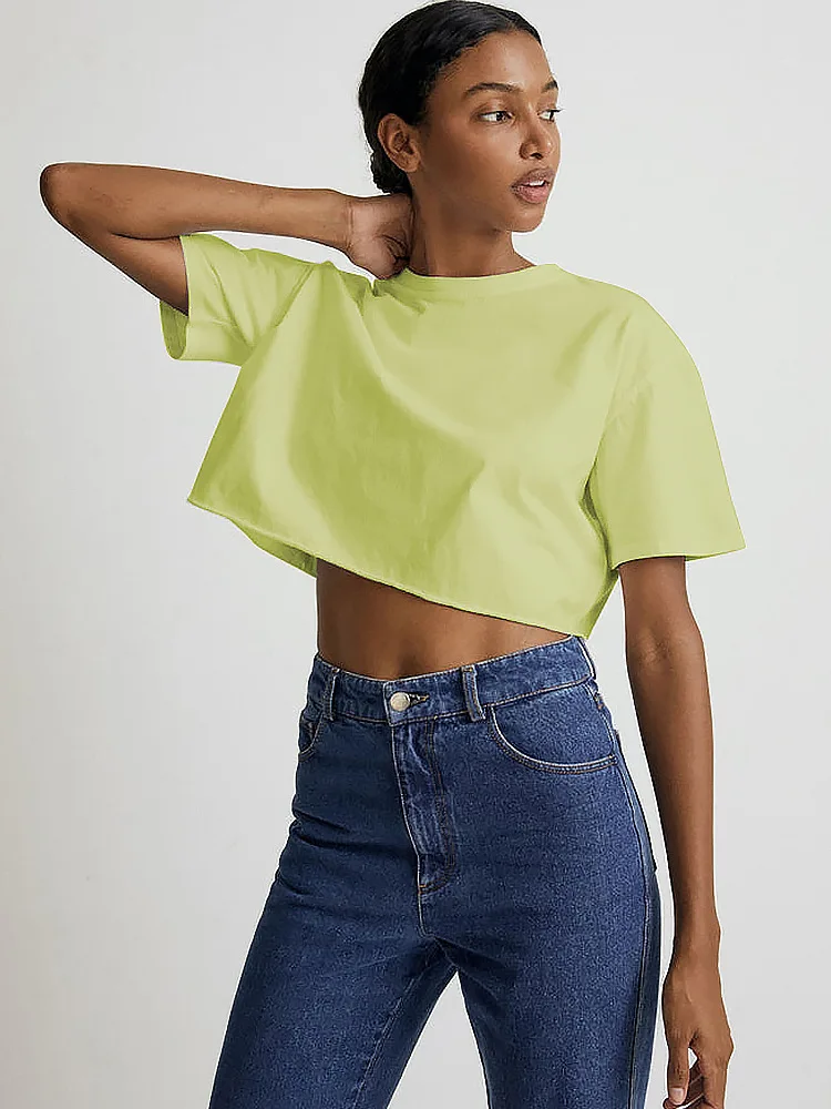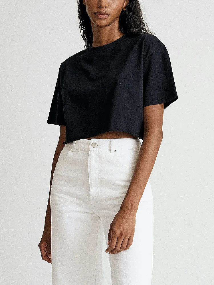 New Arrivals Custom Logo Short Sleeves Crop Top Round Neck Fashion Women Blank Cotton T-Shirts