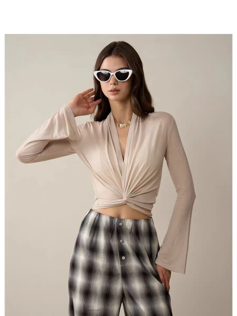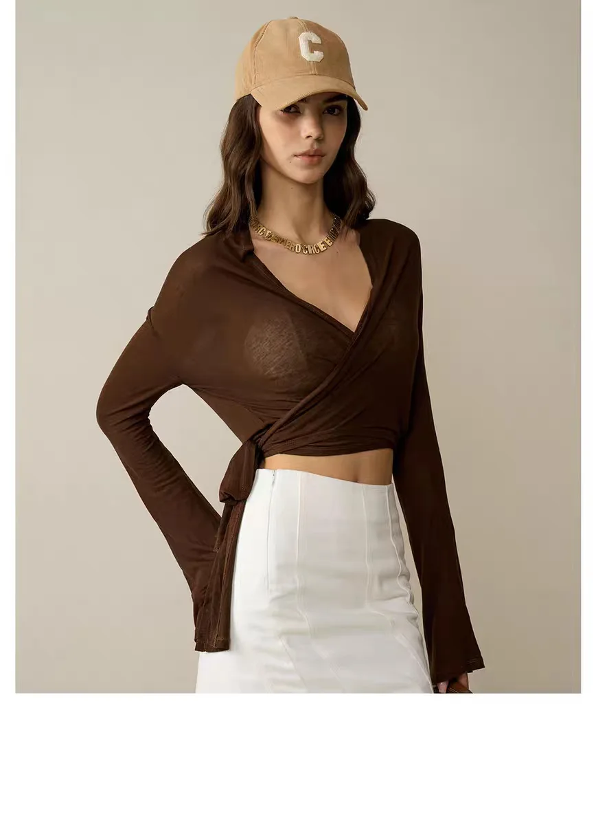 Wholesale Quick Dry Long Sleeve Top Women Wrap V Neckline Top Soft Ballet Gym Crop Tops Fitness Yoga Shirts