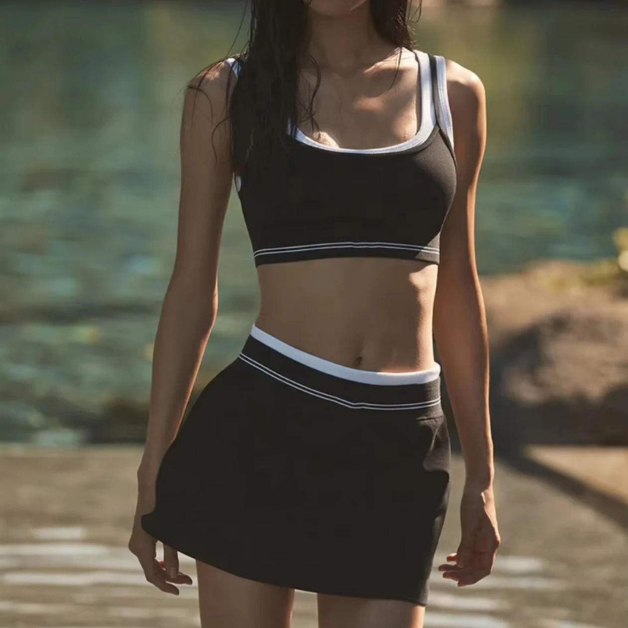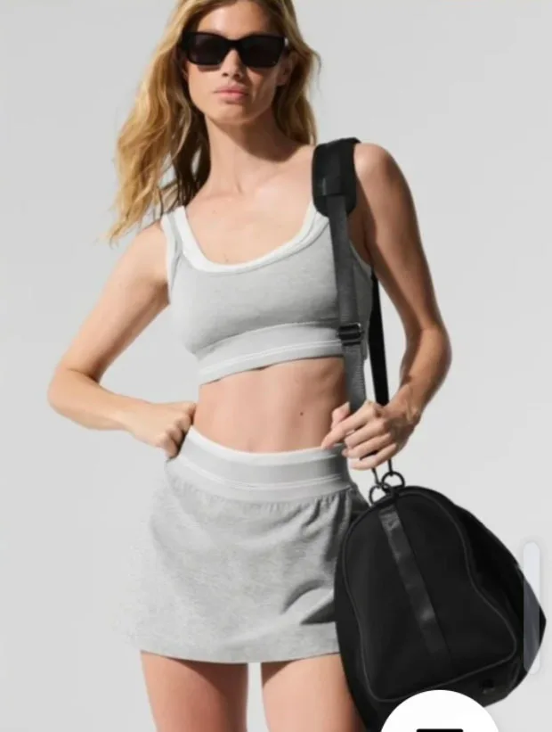 New Arrivals Breathable Tennis Active Wear Quick Dry Elastic Waist Contrast Color Sports Tops 2 Piece Tennis Skirt Set