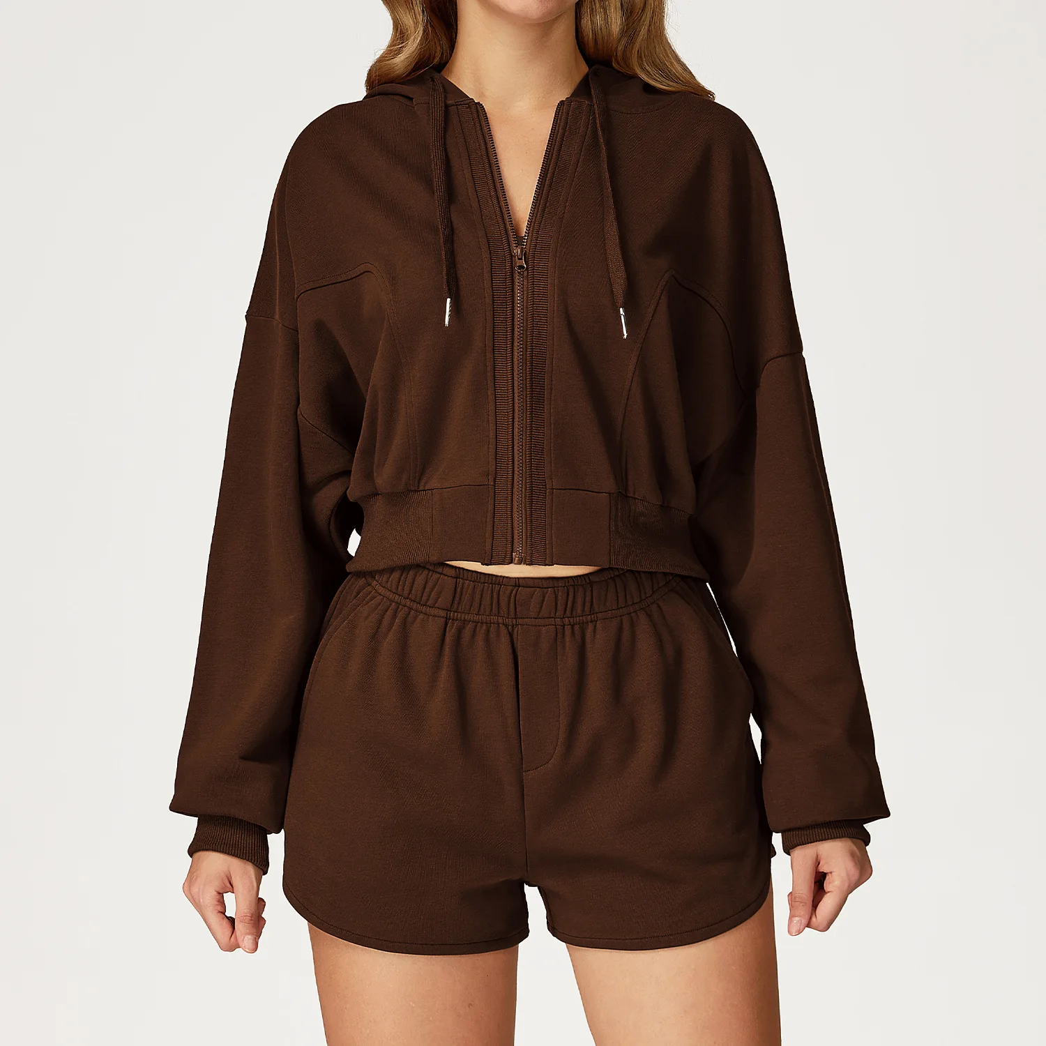 YISHENHON Custom Logo Slim Workout Top Yoga Jackets Zipper Womens Tight Quick Dry Long Sleeve Yoga Sports Coat With a Hat