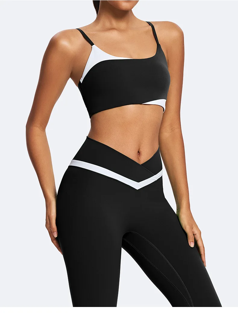 Top Sale Unique Design Color-Block Women Sportswear Cross Back Gym Wear Sexy Girl Fitness Running Yoge Sets