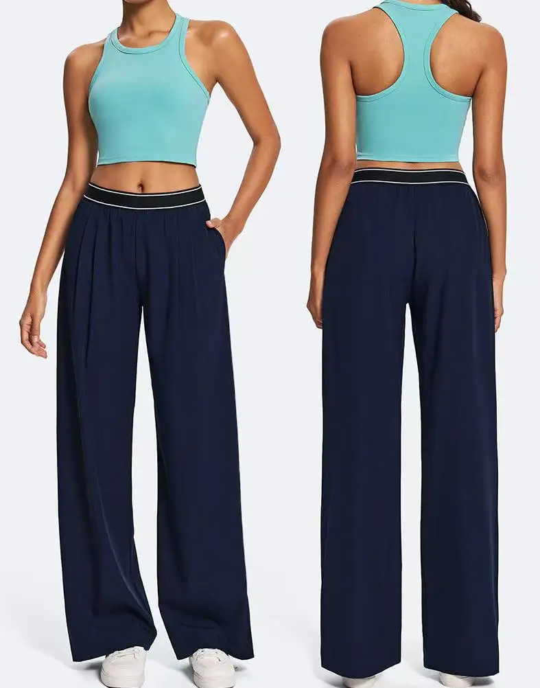 YISHENHON Recyclable Fabric Quick Dry Yoga V Waist Gym Leggings Running Workout Wide Leg Pants Flare Woman Sport Pants