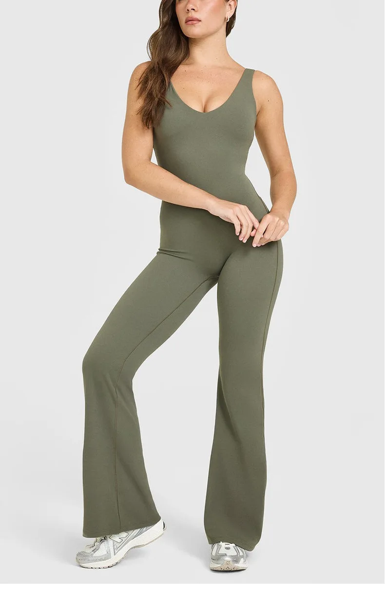 YISHENHON Recyclable Fabric Quick Dry Yoga V Waist Gym Leggings Running Workout Wide Leg Pants Flare Woman Sport Pants