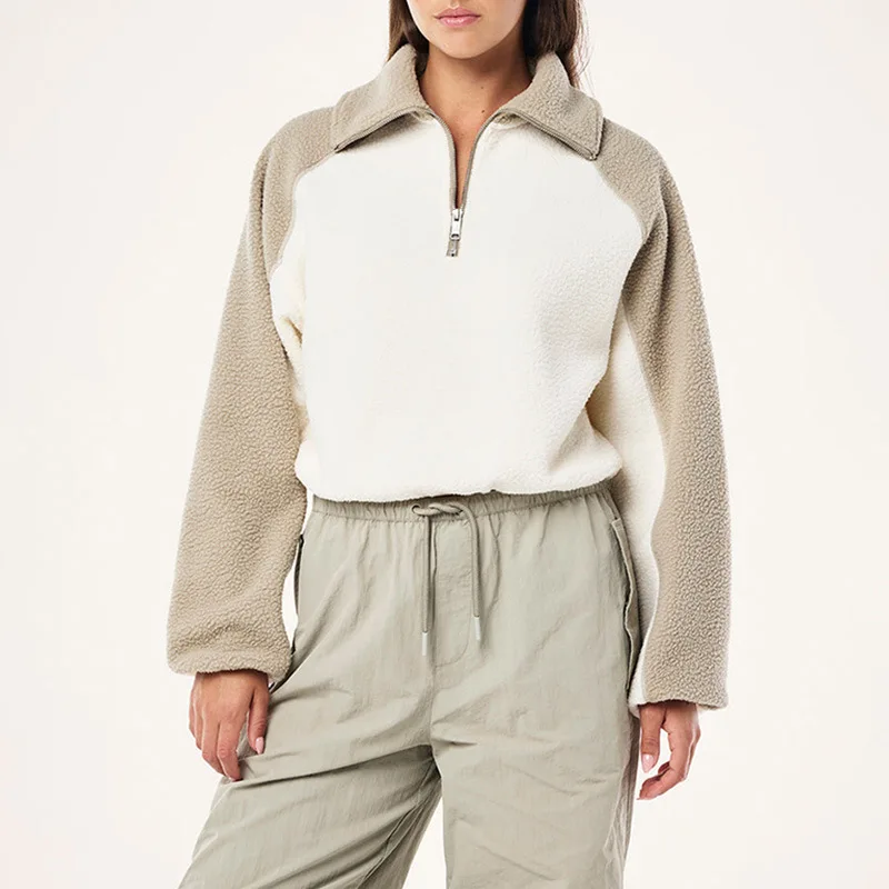 Wholesale Autumn Winter Style Women Warm Yoga Sportswear Long Sleeve Loose Sweatshirt Half Zipper Fluffy Sport Jackets
