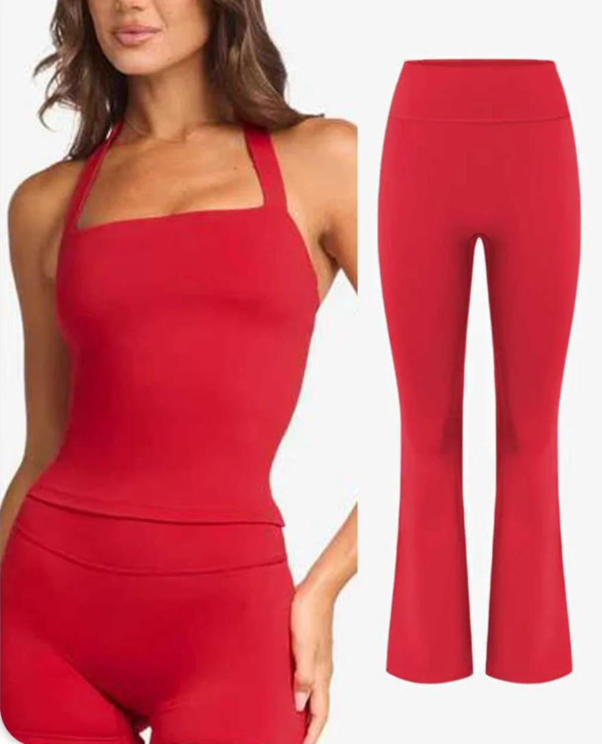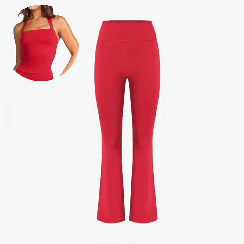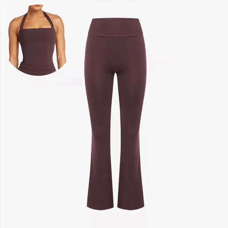 Wholesale Top Quality Cheap Women Sexy High Elastic Yoga Vest Sets Sexy Back Fitness Sets High Waist Flared Pant for Sports