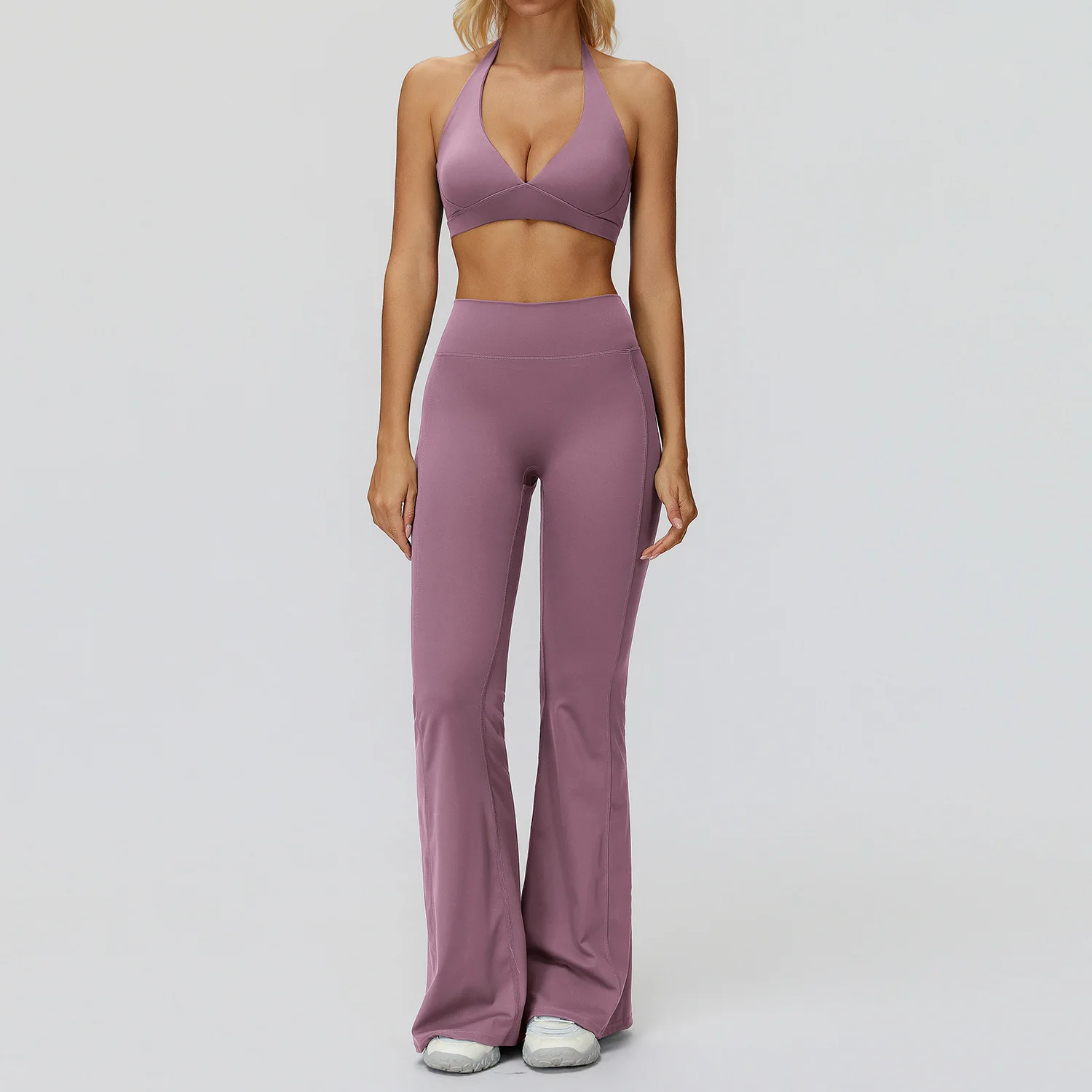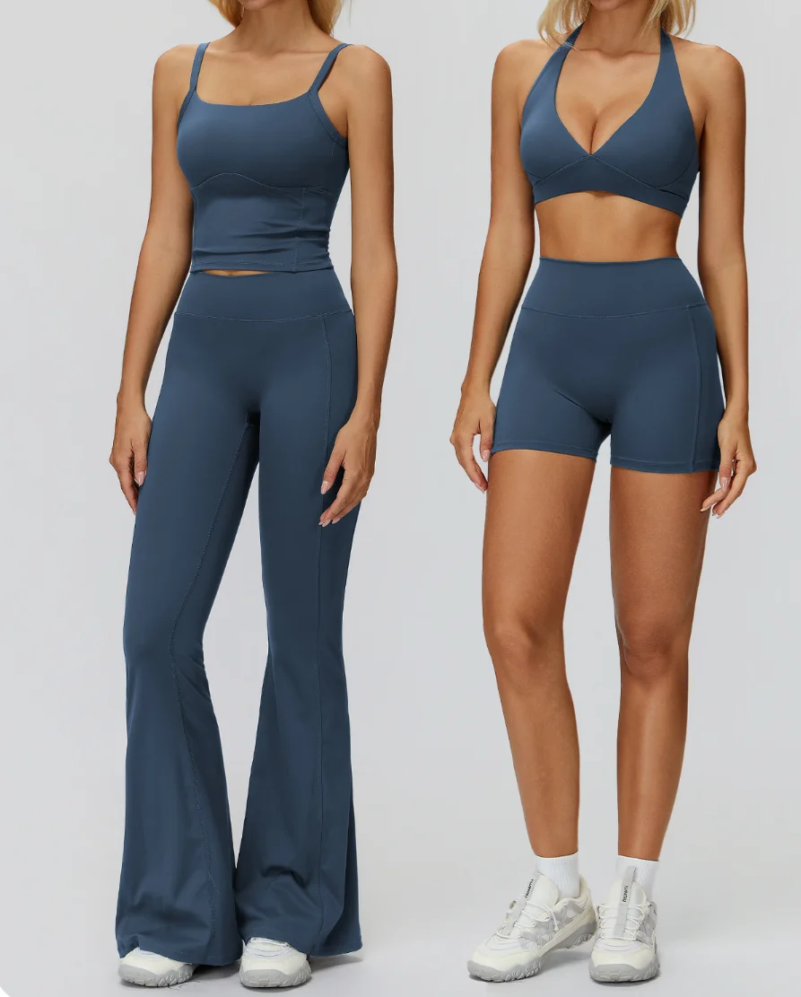5pcs New Arrival Halter Neck Gym Bra Tight-fitting Short Leggings Sets Workout High Waisted Flared Pants Yoga Vest for Women