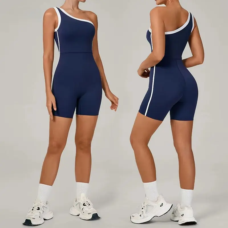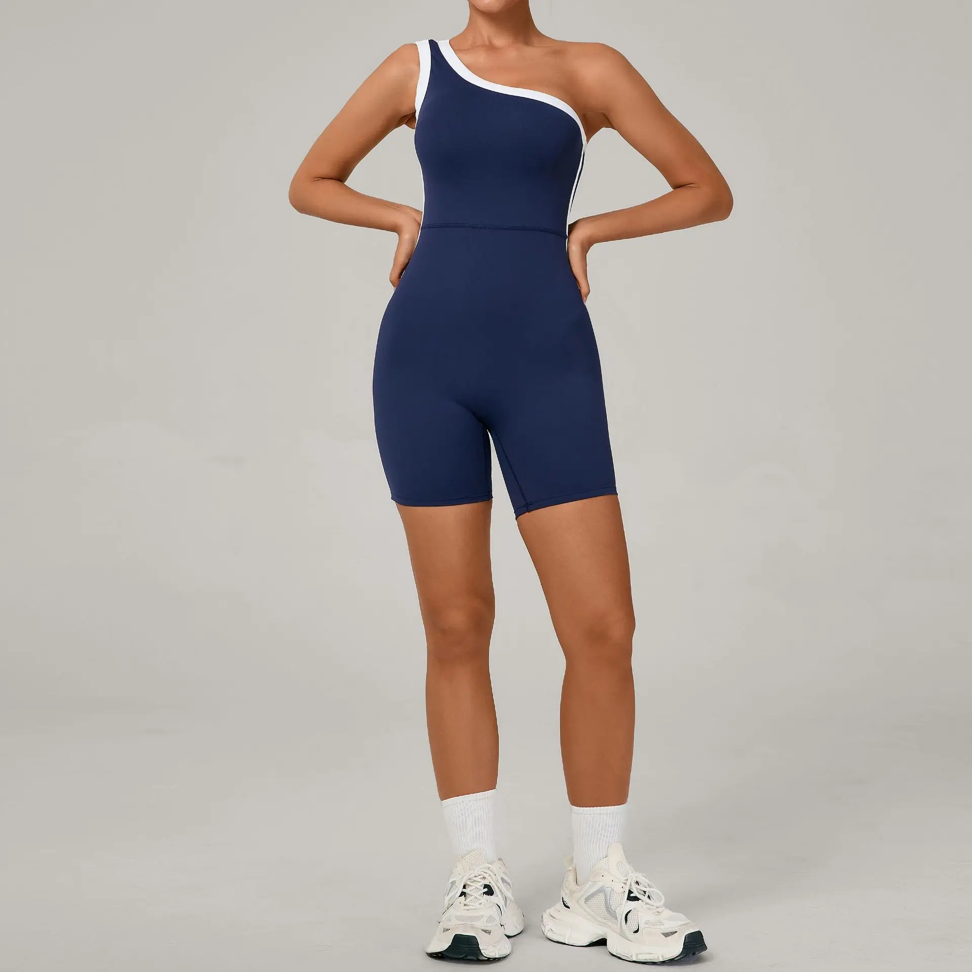 Newest Fashion Design Tennis Wear Tight-fitting One Piece Yoga Jumpsuit Customized Single Shoulder Yoga Bodysuit for Women