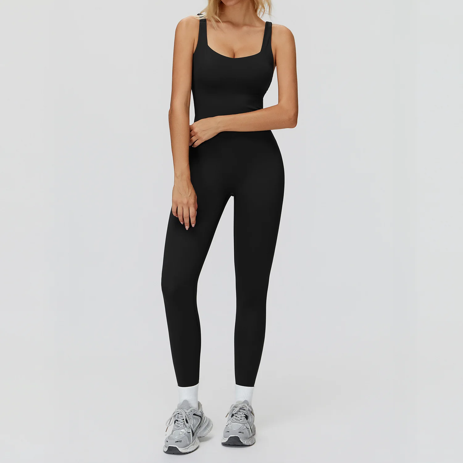 Sexy Hollow Out Back Fitness Jumpsuit Custom Logo Women Sports Wear Sleeveless Tight Fitting One-piece Yoga Body Suit for Women
