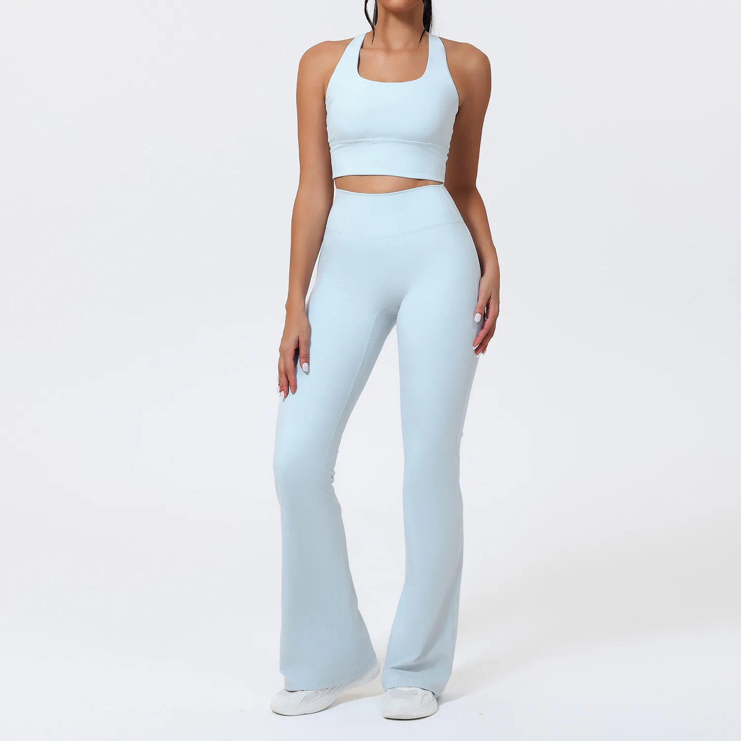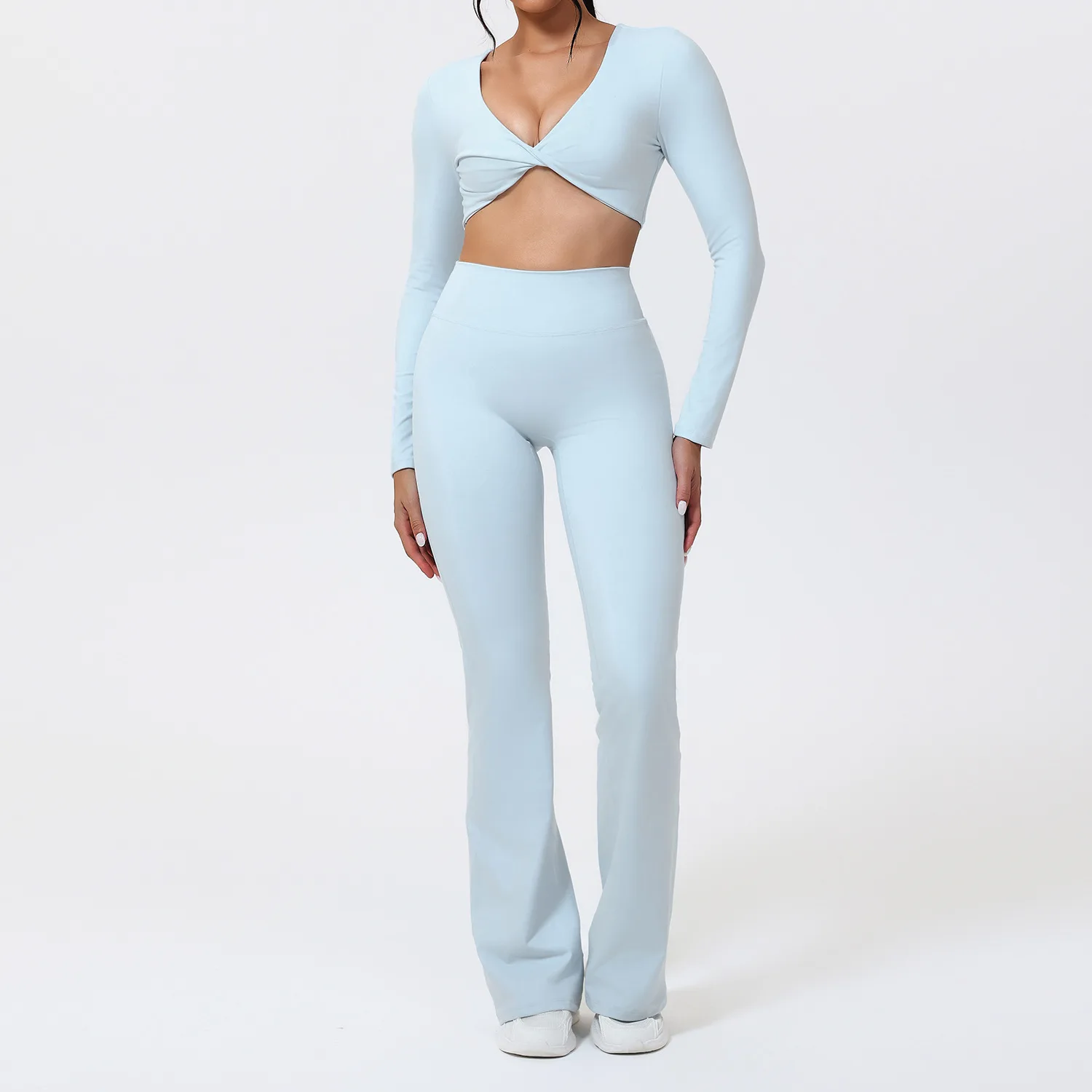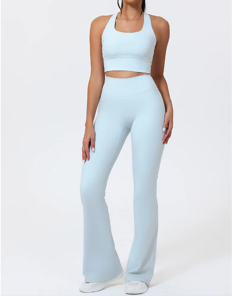 YISHENHON Recyclable Fabric Quick Dry Yoga V Waist Gym Leggings Running Workout Wide Leg Pants Flare Woman Sport Pants