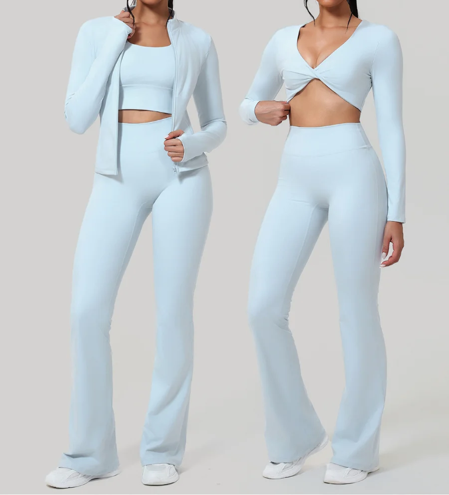 Newest Custom Logo 4 Piece Active Gym Wear Long Sleeves Leggings Set for Women Fitness Clothing Outfits Yoga Jackets Sets