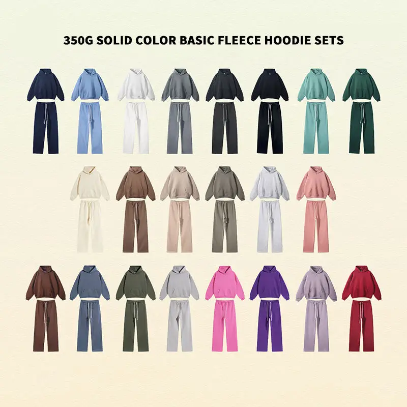 Autumn Winter Customized 350 Gsm Blank Hoodie High Quality Sweatshirt With Sweatpants for Men Heavyweight Oversize Hoodies Set
