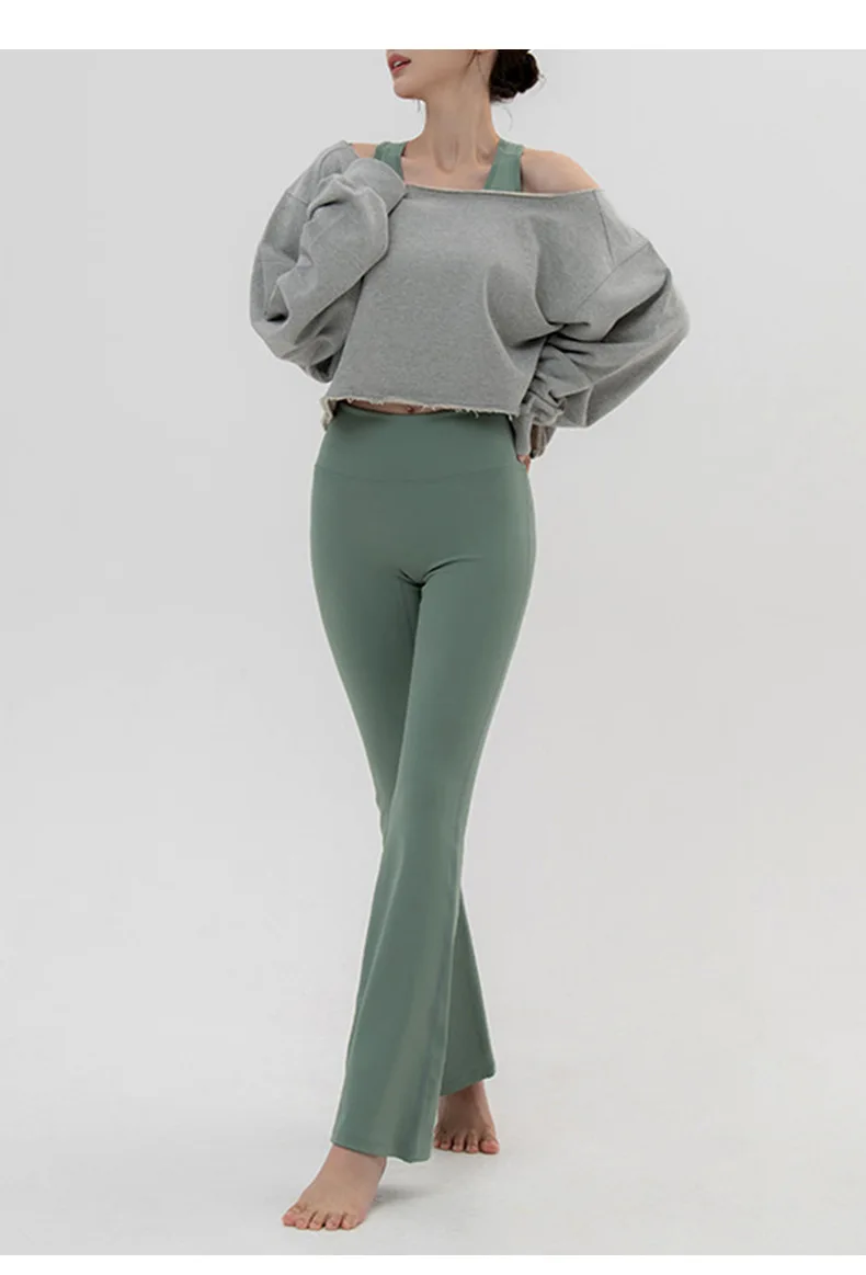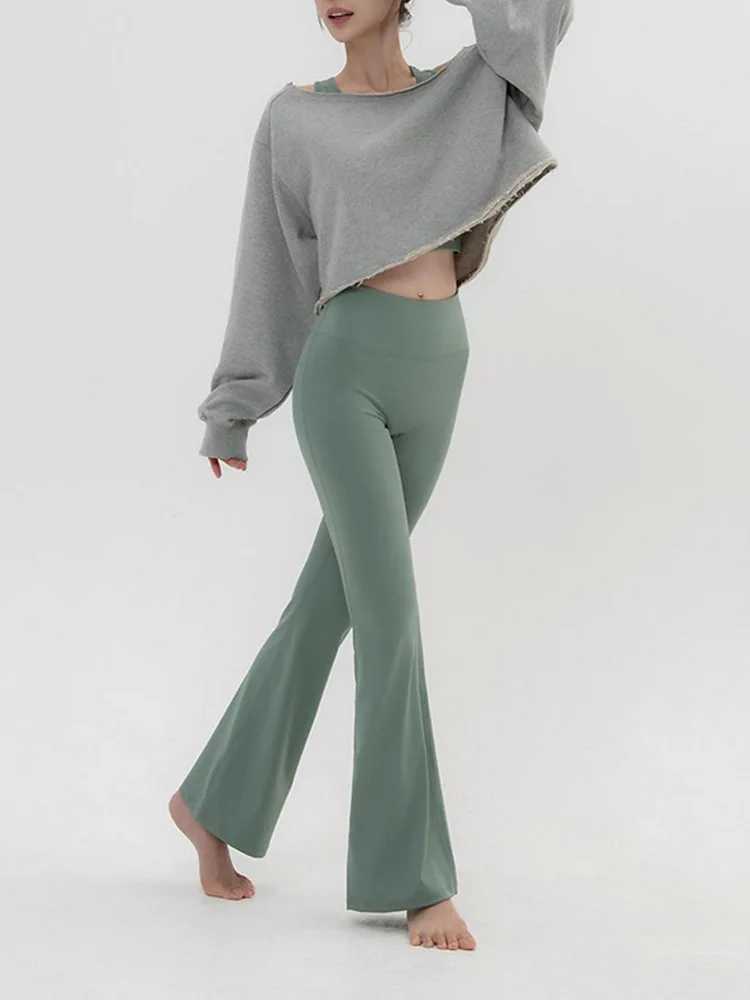 YISHENHON Recyclable Fabric Quick Dry Yoga V Waist Gym Leggings Running Workout Wide Leg Pants Flare Woman Sport Pants