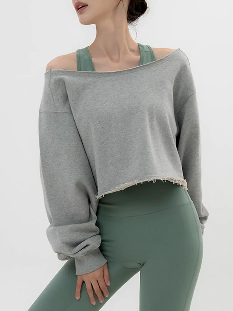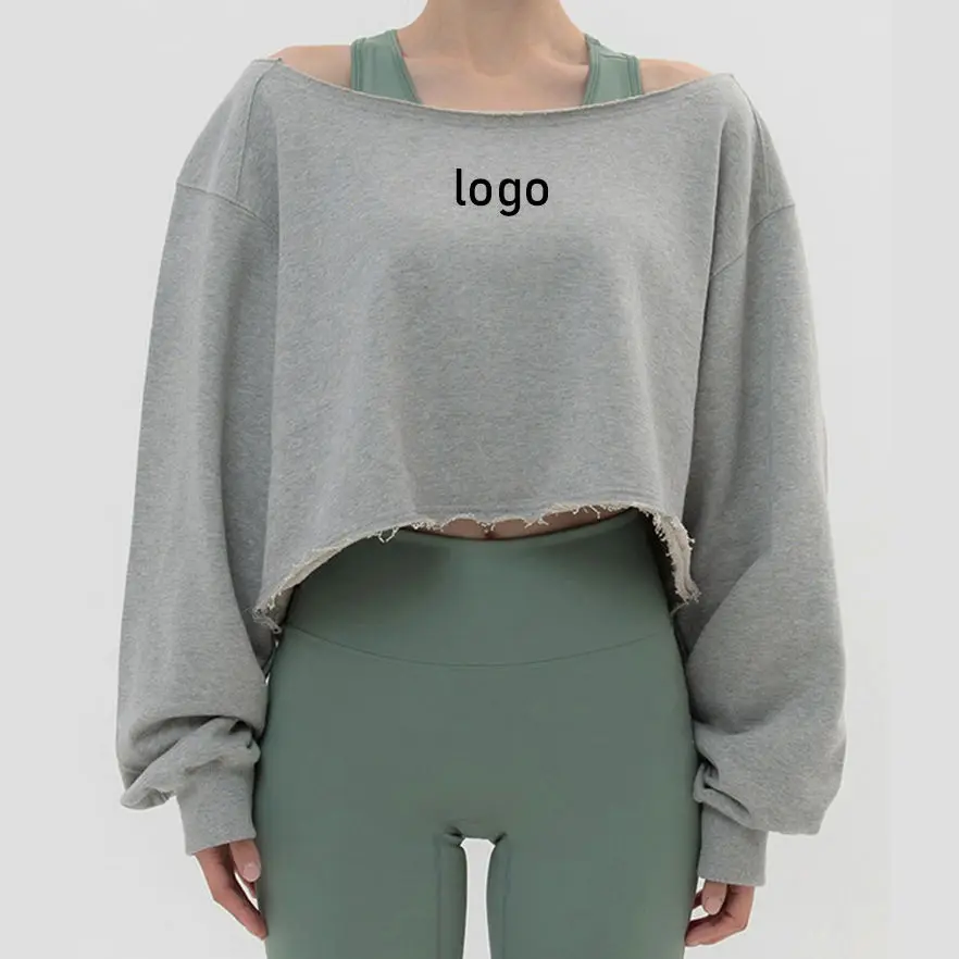 New Customized Women's Sports Off-shoulder Sweatshirt Oversized Casual Vintage Style Tops Cropped Fitness Long Sleeve Shirt