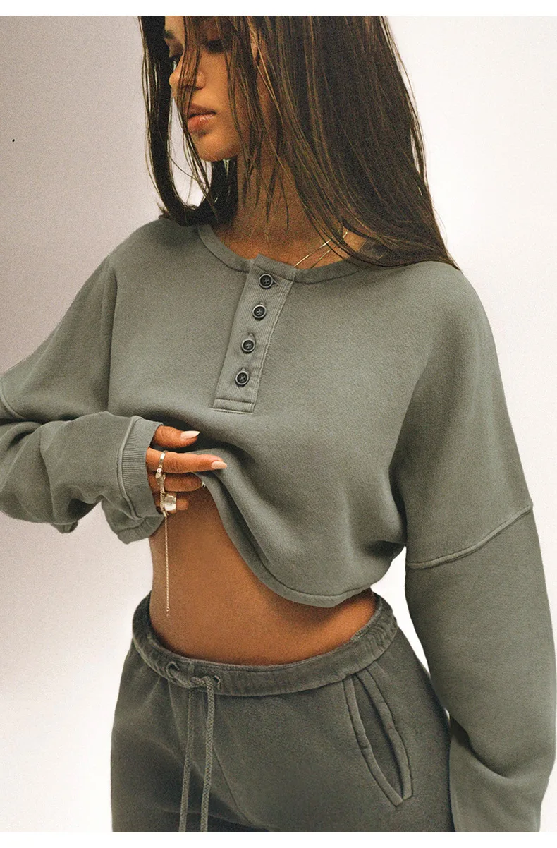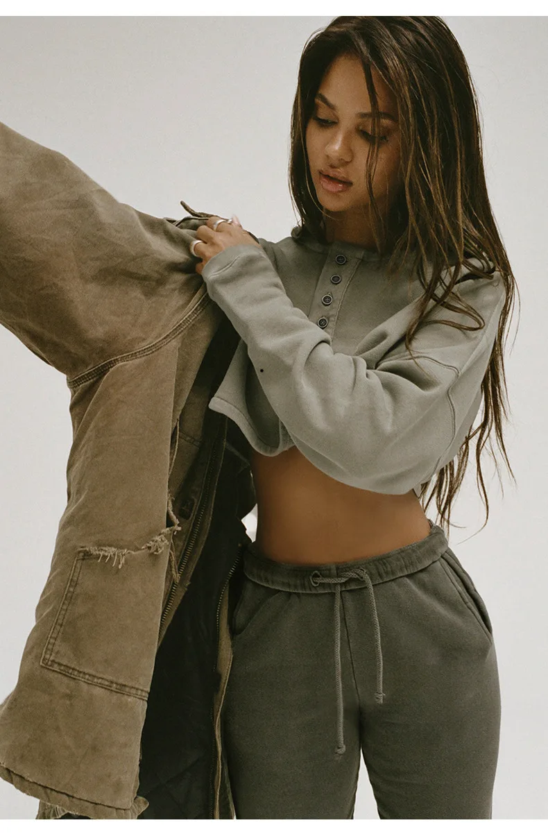 Manufacturer Custom Logo Women's Gym Grey Clothing Hoodie Long Sleeves Sweatshirt Solid Color Casual Fitness Sport Wear