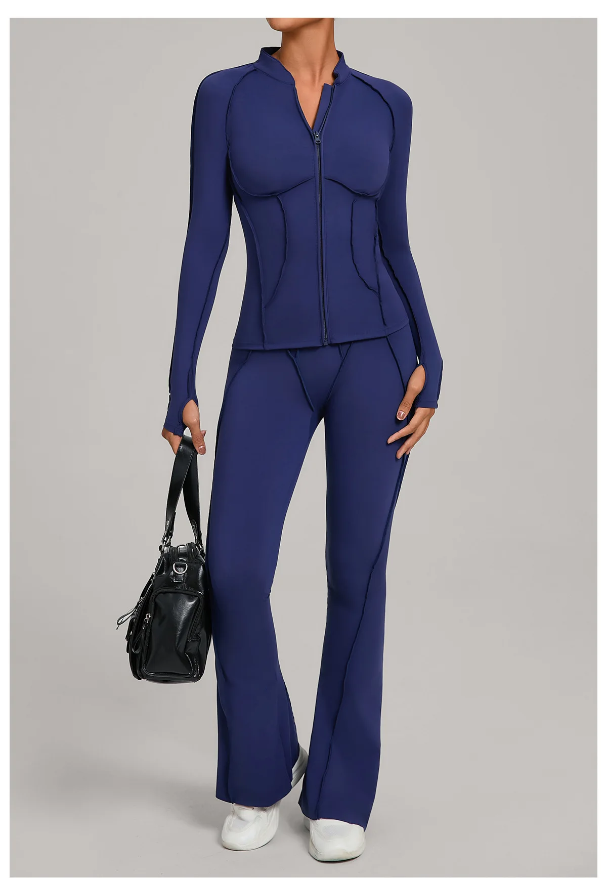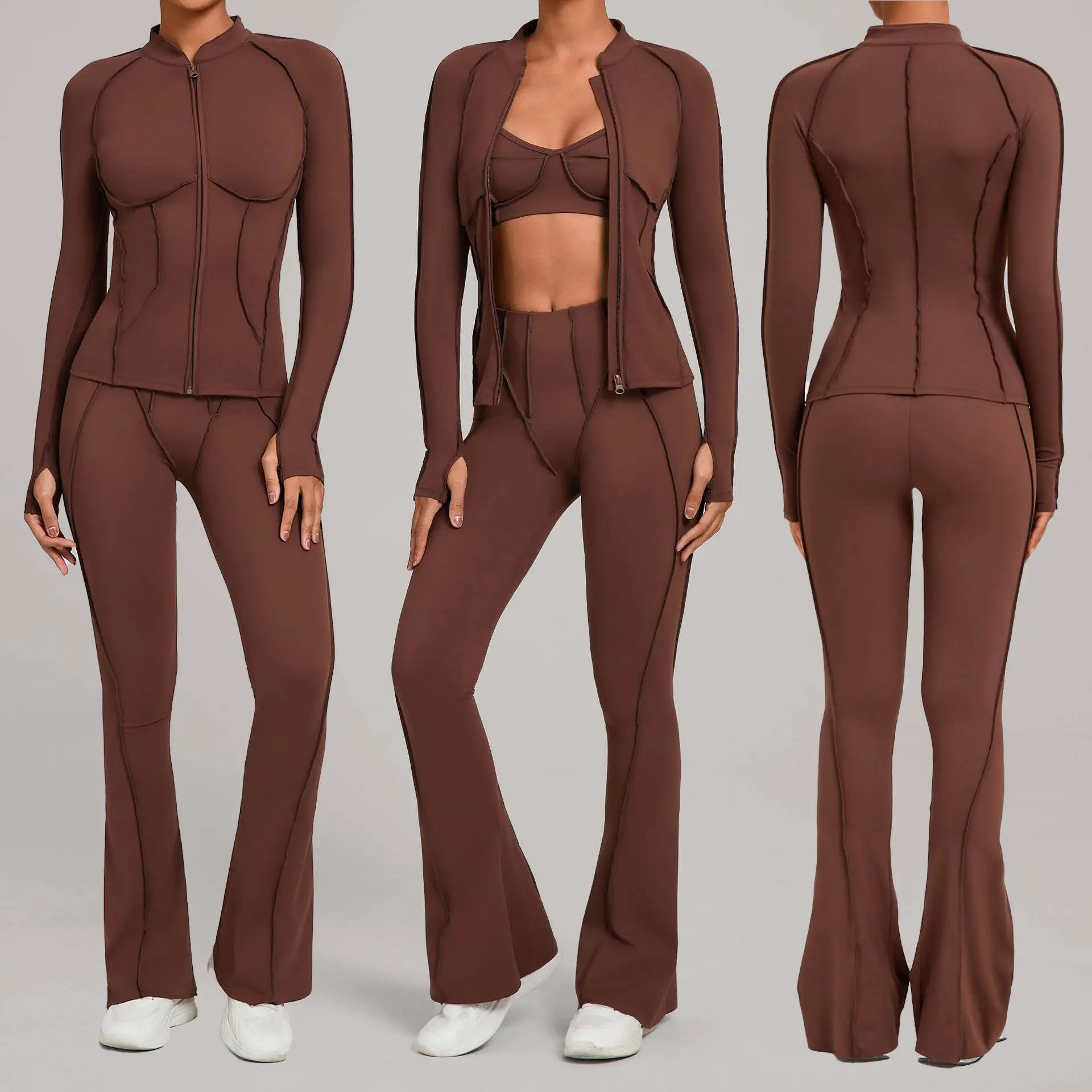 New Comfortable Zipper Slim Jackets 3PCS Sport Bra Set High Waist Flare Pants for Women Gym Fitness Yoga Sets