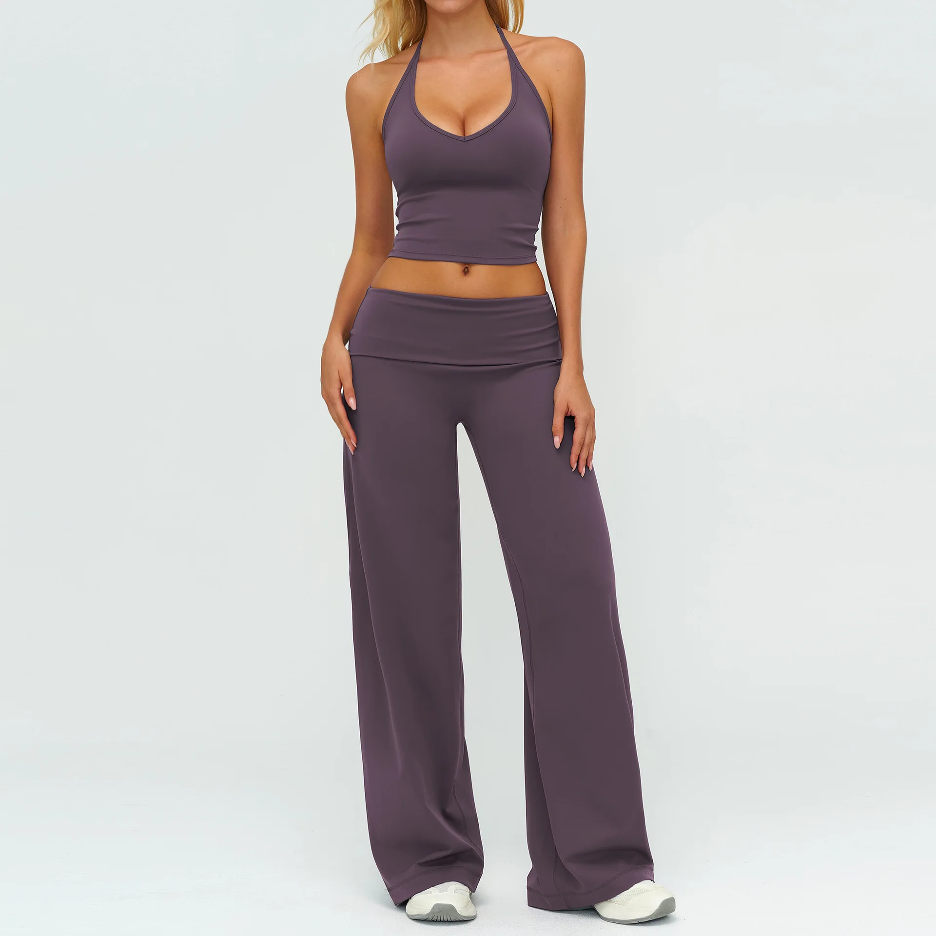 YISHENHON Recyclable Fabric Quick Dry Yoga V Waist Gym Leggings Running Workout Wide Leg Pants Flare Woman Sport Pants