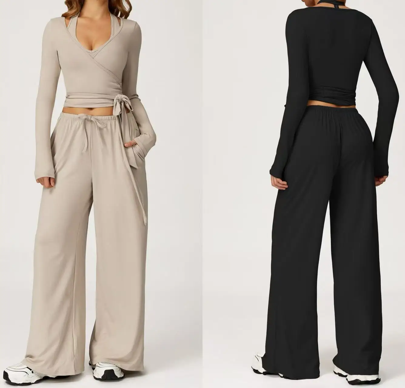 Cusstom Logo Comfortable Women's Activewear Yoga Long-sleeve Bandage Tops Sets Workout Running Casual Pants Gym Fitness Sets