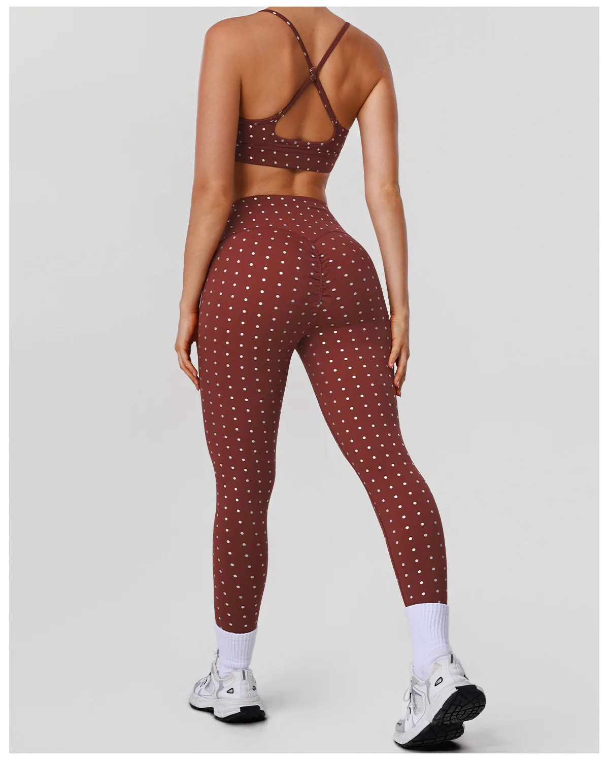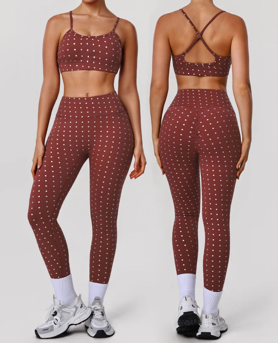 Personality Design Women Sexy Cross Back Bra Tight Leggings for Fitness Gym Two Pieces Wave Point Yoga Sets