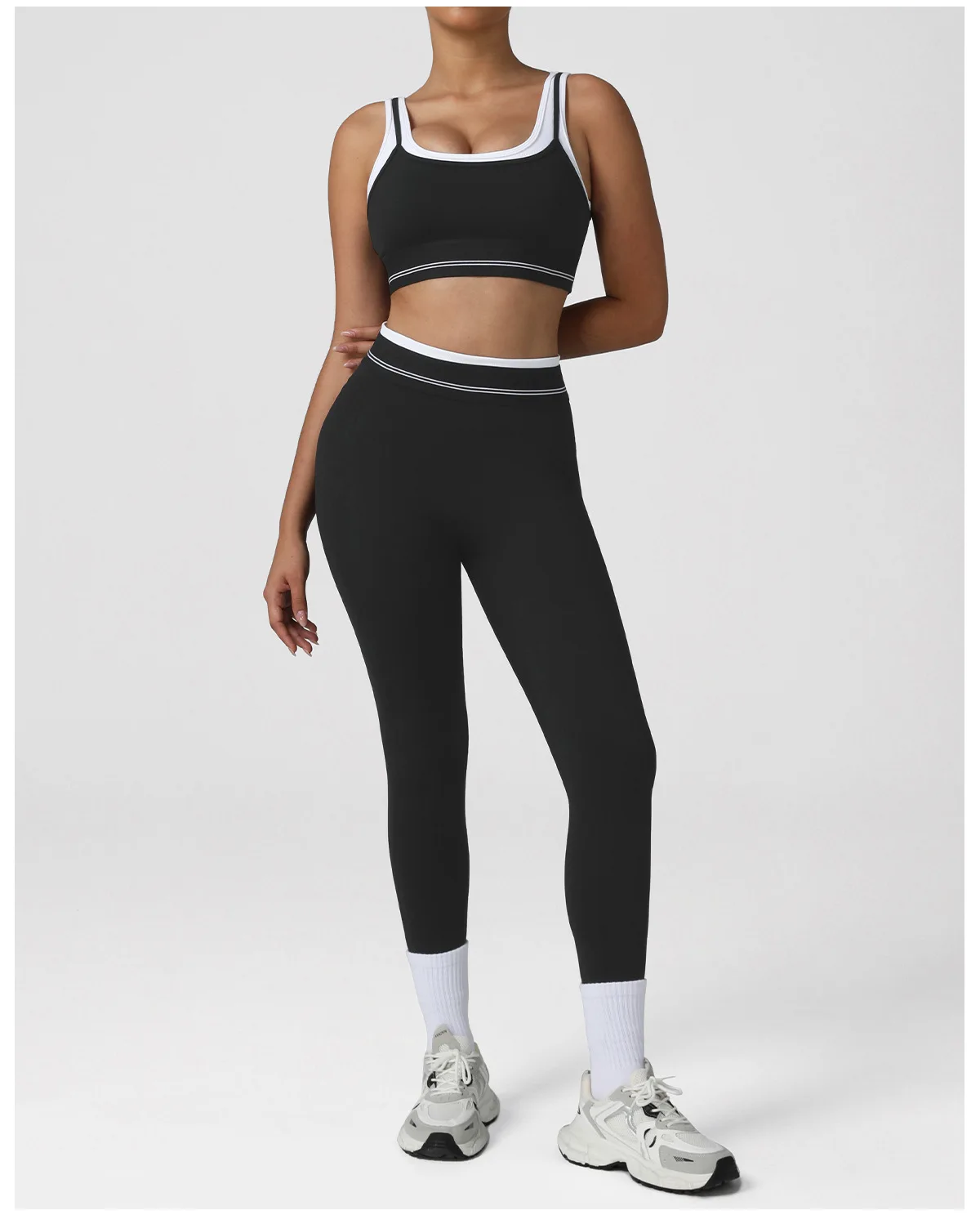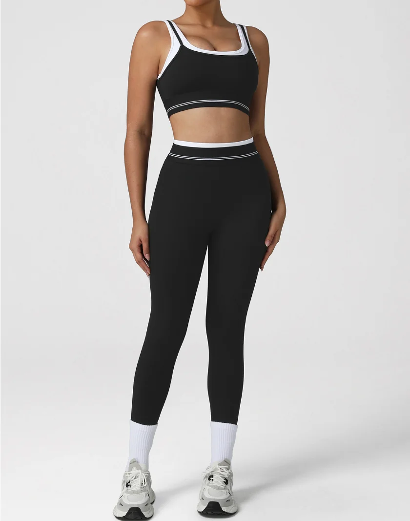Customized Women's 2 Pcs Activewear Sports Sets Breathable U Back Yoga Bra and Workout Leggings Gym Fitness Set