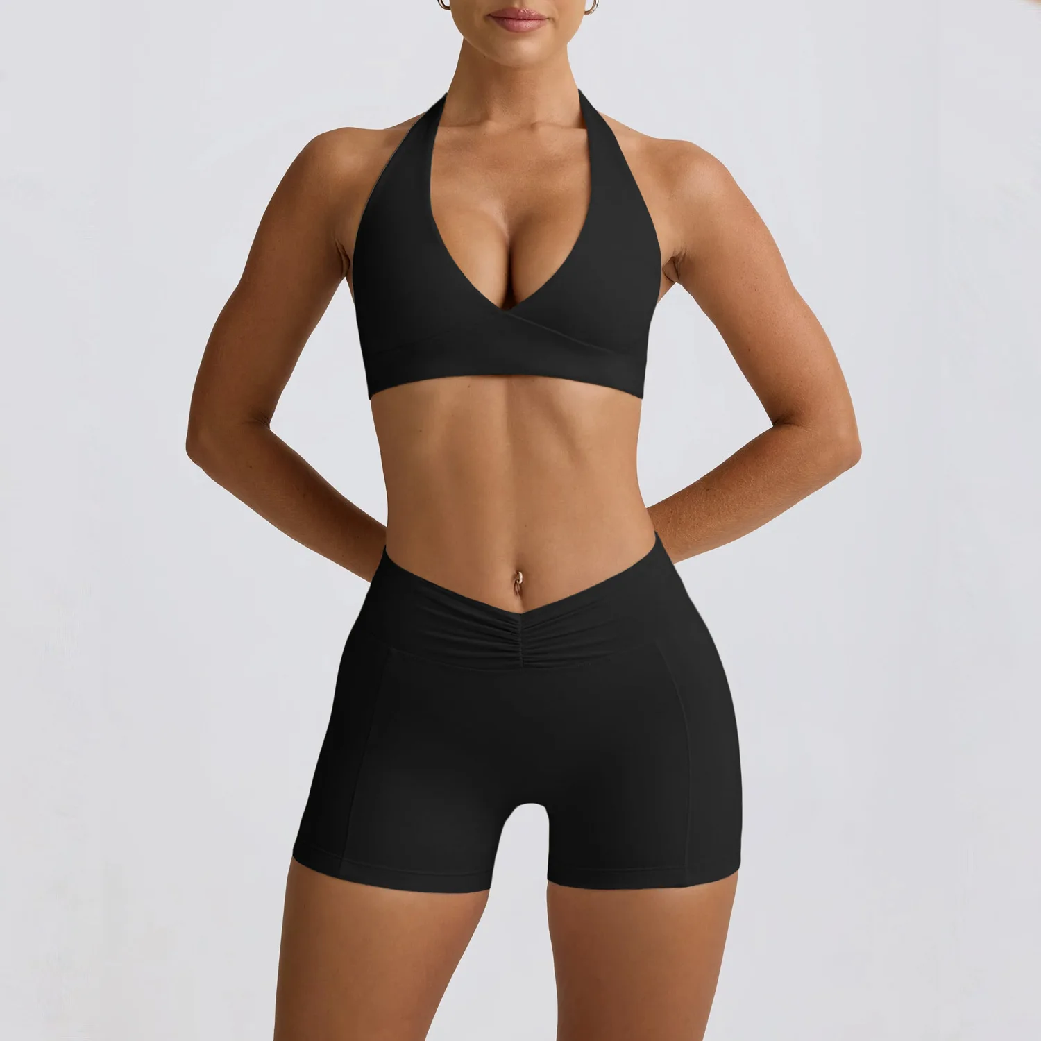 Newest V Bra Tight-fitting Sports Active Wear Outdoor High Scrunch Waist Butt Lift Shorts Sets Fitness Yoga Suit for Women