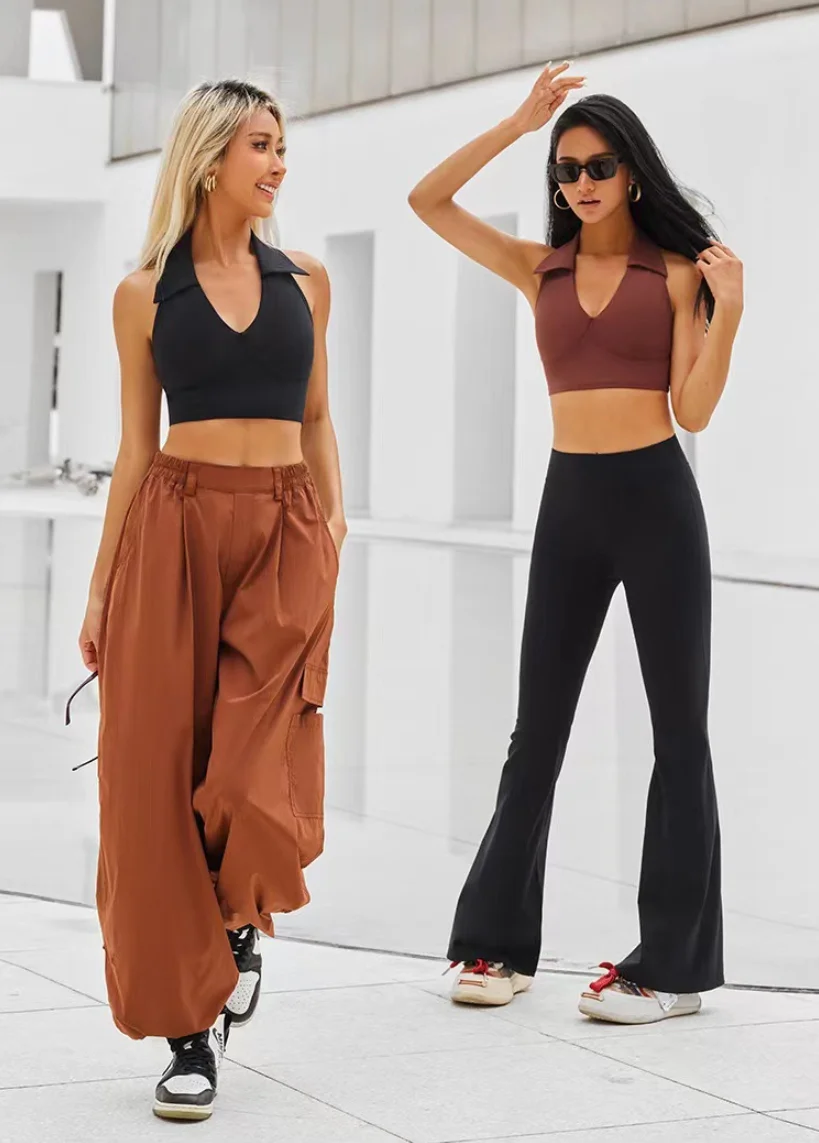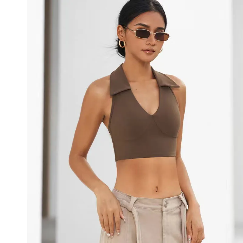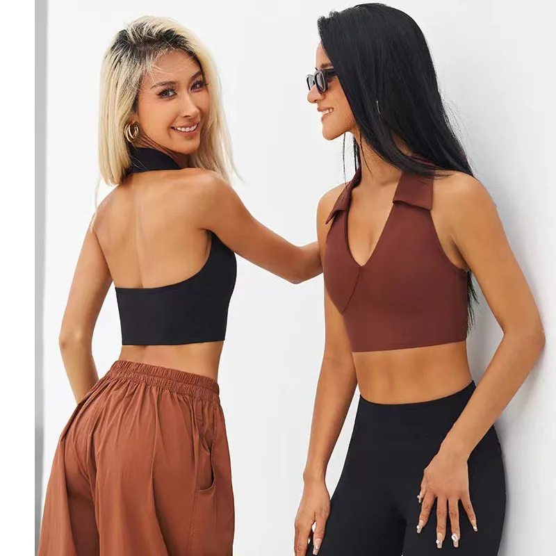 Simple Women's Anti-Sagging Fitness Sports Bra Halter V-Neck Beautiful Back Quick-Drying Yoga Top with Chest Pad